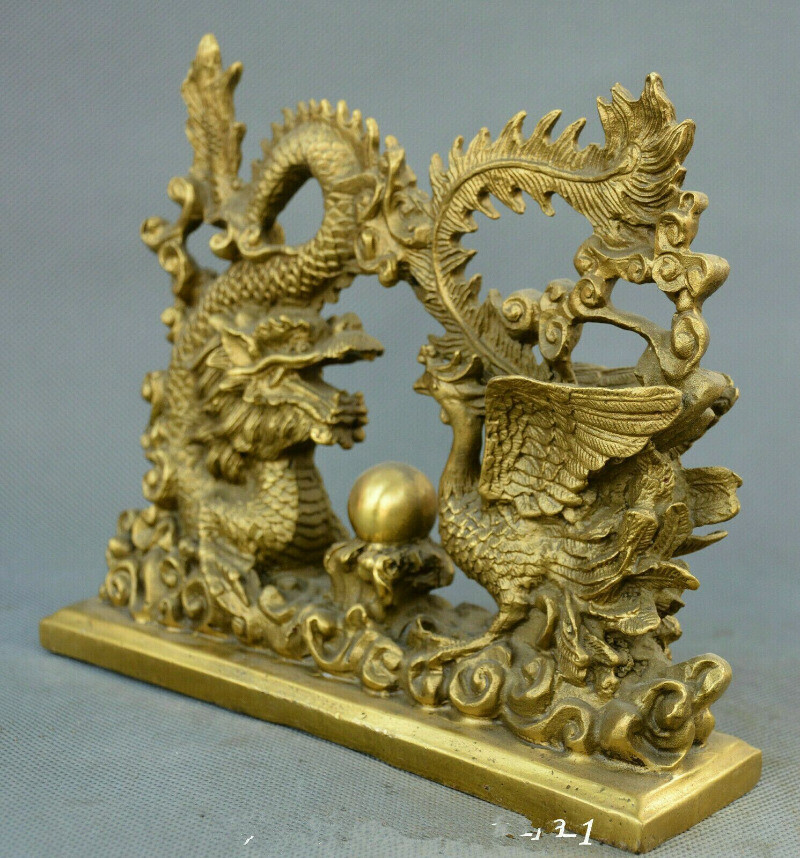 20.5cm China Fengsh ui Bronze Carve Auspicious Phoenix Dragon Play Bead Statue Size:205MM*170MM*55MM Weight :1.5kg Shipping Policy .If this is your first deal with us or buying for an item which needs international shipping, we suggest you review our shipping terms in descriptions. International shipping usually takes longer time than domestic, since it?s based on shipping service provider and both countries Customs.Estimated delivery time varies by destination but usually take 20-30 business days(excluding holidays and weekends),or longer for certain countries. Payment Policy Payment must be received within 5 days of the auction close. We reserve the right to cancel the transaction and relist the item if payment has not been received within this time frame. Feedback Thank you for your purchase! If you are happy with items, please leave us positive feedback with five star. We would highly appreciate your kindly & encouraging approval. Leaving Negative feedback or Neutral Feedback is never a good way to resolve problem . If any questions or concern with your order, please us before you leaving Negative/Neutral feedback or opening disputes. We will offer help to resolve your problems as fast as possible .