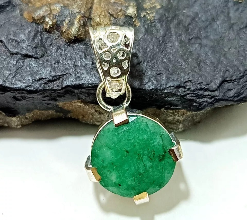 $ 116.16Oval Natural Green Emerald Sterling Silver May Birth Sister Boho Pendant Jewelry