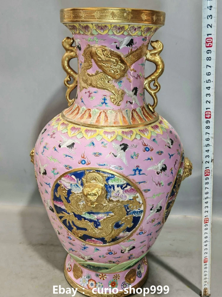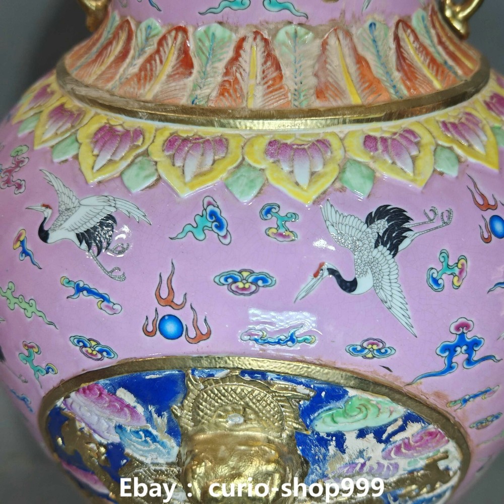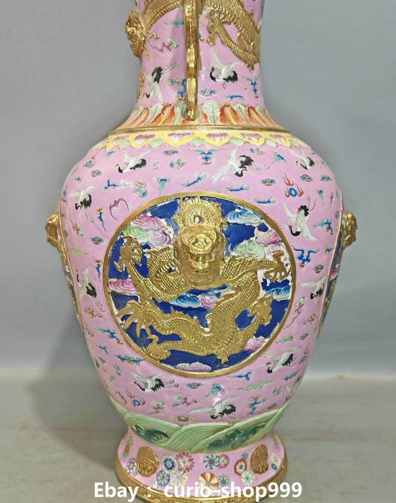 **** Welcome to our antique & Collectable Shop : Porcelain**** Description: Here is 20.8" Qianlong Famille Rose Porcelain Gold Dragon Crand Animal Bottle Vase Pair. It is in good condition, and was created by skilled craftsmen in traditional style with fine handcrafts.This is a great piece of valuable collection, a valuable personal alter or a very good present. the handwork is very fine with incredible detailling. Don't miss out this chance to get it.Wish you good luck! . Material : Famille Rose Porcelain Gold Size : Heigh t 20.8 Long 9.0 B readth 9.0 (inch) Condition Perfect Condition. Perfect, with no scratches, flaws or repairs. Weight: 21 KG----included the weight of packing materials Shipping cost to all over the world countries in Free Honored Customers: We are selling the collectibles products and crafts in Beijing ,China since 1993 and collected them all over the world all the time . In our shop the bronze sculpture, animal, vase, urn, flowerpot,Incense Burner.Table chair sets. Militaria goods. buddha statues, Bodhisattva Statues, Buddhist Ritual Items etc is our speciality .Many of the items we sell come from our own personal collection and have been in our family for a very long time .My great-grandfather was the first in this family to start collecting art & antiques when he still lived in San Xi and Tibet around 1922 ,some of the paintings he once collected can now be seen in museums around the globe.We won't make money from t he shipping cost, if you dislike the item when you receive it,we can refund all of your money to you within thirty days. Please confidence for bidding . We recommend the combine shipping and offer you an big price discount if you order more items together ! 2025.02.17 四 号