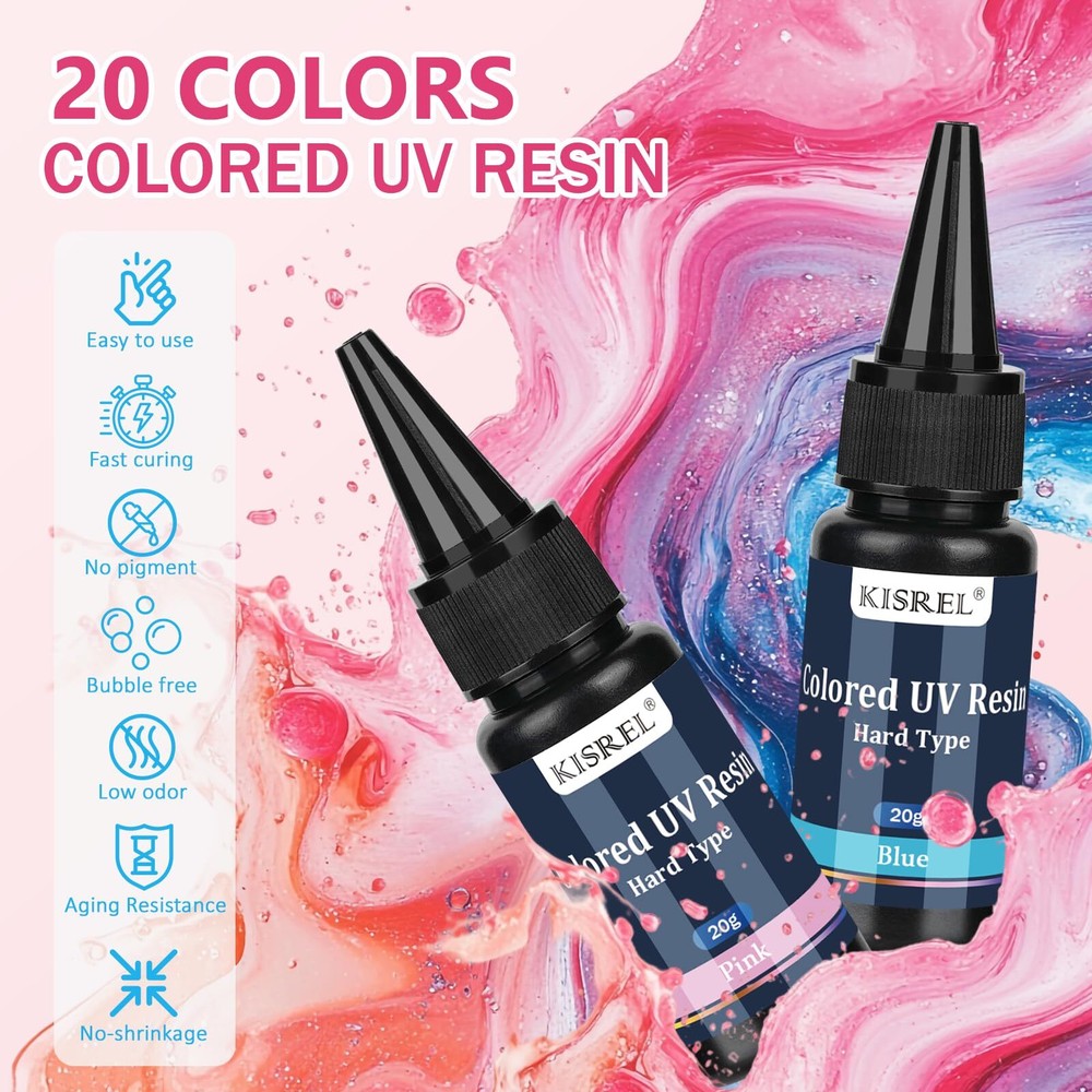 UV Resin, 20 Colors - 400g UV Resin Kit, Transparent Colored UV Resin, Rigid Ultraviolet Clear UV Resin for Crafts, Jewelry Making and Decoration 【Colored UV Resin】: Colorful uv resin kit contains 20 kinds of colored resin. Each bottle of resin is 20g, Perfect for beginners. 【Professional and Safe】: Our UV resin is made of high quality raw materials and professional unique formula, safe and non-toxic; completely odorless after curing; short curing time; 36W UV lamp curing only 1-3 minutes. 【Vibrant Colors】: The Color Resin kit include 20 colors, red, orange red, orange, orange pink, pink, yellow, lemon yellow, greenish blue, blue, sky blue, dark green, green, light green, purple, pink purple, light purple, black, gray, coffee, white. Rich colors help you create amazing works! 【Widely Used】:UV epoxy resin can be used to make jewelry, craft decorations, castings, ornaments and so on. It can also be mixed with dried flowers, foil, glitter and sequins to create more brilliant colors. Hurry up and share these ideas with people around you! 【Suggestions for Use】:①Store in a cool place. ②Try before use to master the technique. ③The surface must be kept clean and dry when bonding. ④Don't touch with your hands immediately after curing, wait for curing and cooling before touching to avoid leaving fingerprints. UV Resin, 20 Colors - 400g UV Resin Kit, Transparent Colored UV Resin, Rigid Ultraviolet Clear UV Resin for Crafts, Jewelry Making and Decoration Shipping We offer FREE shipping on all orders! We ship within Three business days of payment, usually sooner. We use a selection of shipping services such as UPS, FedEx, USPS etc. We only ship to the lower 48 states, no APO/FPO addresses or PO Boxes allowed. Local pickups and combined shipping options are not provided at this time. Return You can return a product for up to 30 days from the date you purchased it. Any product you return must be in the same condition you received it and in the original packaging. Please keep the receipt. Payment We accept payment by any of the following methods: PayPal Please pay as soon as possible after winning an auction, as that will allow us to post your item to you sooner! Feedback Customer satisfaction is very important to us. If you have any problem with your order, please contact us and we will do our best to make you satisfied. Contact Us If you have any queries, please contact us via ebay. We usually respond within 24 hours on weekdays. Please visit our eBay store to check out other items for sale! Thank you for shopping at our store.