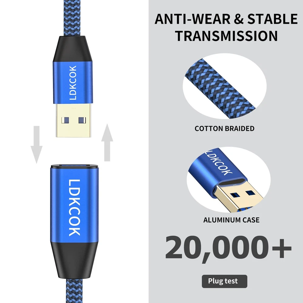 USB to USB Cable 20FT,Durable Braidedfor USB 3.0 Male to Male Type A to Type A Cable Data Transfer Compatible with Hard Drive, Laptop, DVD Player, TV, USB 3.0 Hub, Monitor, Camera, Set Up Box and More LDKCOK USB 3.0 A Male to A Male Cable ● Gold Plated High-speed USB 3.0 Type A Male to Male Cable supports connecting USB 3.0 and USB 2.0 peripherals to computer (Mac or PC). The high-performance USB cable provides convenient connection to external hard drive enclosures(SSD or HDD), printer, modem, cameras, USB in car, set top box and other USB compatible devices. The combination of gold plated conductors and multiple foil & braid shielding layers improve data cable superior performance without data delay and data loss. High-speed USB 3.0 ● The USB 3.0 cable provides high-speed data transfer speed up to 5Gbps (USB 3.0 compliant source and target device),10x data transfer rate than USB 2.0. Nylon Tangle-free & High-performance Design ● Premium nylon braided cable adds additional durability and tangle free. ● Strong SR design withstands 10000+ bending test. ● The premium aluminum alloy housing with surface oxidation treatment adds this USB cable more durability and give you a stylish shell and a great metallic texture. Backwards Compatible ● Backwards compatible with USB 2.0 and USB 1.1 ports No driver needed ● No driver needed for USB 3.0 A to A cable. Just plug-and-play for hard drive enclosures, laptop cooler, camera and other high-speed USB peripherals. Package Contents ● USB 3.0 Type A Male to Male Cable x1 Pcs Note ● In order to archive USB 3.0 performance, the source and target device shall be compliant with USB 3.0. ● Do Not use as charging cable. ● Do Not support connecting two computers directly. 🚀 High-speed Transfer: Data transfer rate up to 5 Gbps, USB 3.0 extension cable is 10x faster than USB 2.0 (480 Mbps), Back up your large data files in seconds and ensures data syncing quickly. 🚀 Reinforced & Durability: USB A to USB A cable equipped with gold plated connectors, nylon braided jacket, reinforced SR molding joint and aluminum alloy case, USB extension cable provides a stable signal transmission. The premium durable nylon braided material provides more stronger protection and flexible performance and it's never rupture. 🚀 High-Performance Design: USB 3.0 cable is excellent for protecting the USB sockets of your devices,to avoid damage and wear in daily frequent plugging and unplugging process. Pass 10,000 bending test, this USB 3.0 A to A Male Cable is more reliable, specially designed for a longer lifespan. USB 3.0 Cable constructed with multiple shielding layers to minimize signal interference and increase data transmission stability and effectively. 🚀 Upgraded Connectors: USB extension cable with anodized aluminum treatment metal shell, provides you a perfect metal texture and a good touch feeling. Ensure the extreme durability and no discoloration in long-term use, the gold plated connectors with a good corrosion-resistant and anti-oxcdation, effectively prolong usb 3.0 cable service life. 🚀 Universal Compatibility: This USB extension cord is widely compatible with USB 3.0 and USB 2.0 peripherals, such as connecting to Windows PC desktop,External Hard Drive (SSD or HDD) with Type A port, Laptop Cooling Pad, DVD player, USB 3.0 hub, Monitor, Camera, Set Top Box, Blue-ray Drive,Playstation,Printer, Scanner, Camera, Smart TV and 2.5-Inch External Hard Drive Enclosure with Type A port. Note: This is not charge cable. Shipping from the USA All of our products are shipped from the USA, ensuring quick delivery to your destination. Payment We offer the following payment methods: PayPal, credit card, bank transfer, and eBay's secure payment system. Free Shipping & Free Returns Shipping within the USA is FREE. Additionally, any return is absolutely free for you. Risk-Free Purchase You have the option to return an item within 30 days without any justification. We cover the return shipping costs! Fast Shipping We ship immediately upon receipt of payment. Generally, the package is delivered within 2-3 days in the USA. If it takes longer, we will contact you. Quality and Costs Made in Europe, USA, China No customs fees or additional charges Total satisfaction guarantee Invoice with declared VAT available upon request in .pdf format Feedback Your feedback is very important to us. After you pay for your purchase, you will automatically receive positive feedback from us.