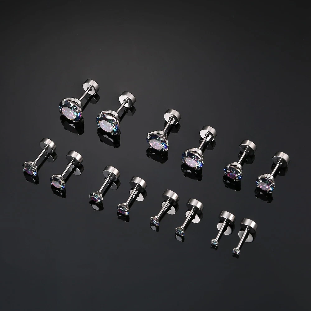 20G Hypoallergenic Flat Back Earrings for Women Men Silver 14K Gold Stainless Steel Stud Earrings Brithstone Cubic Zirconia Studs Surgical Steel Cartilage Earrings for Sensitive Ears 7Pairs Multi Size Stud Earrings :1 Set=7 pairs stud earrings, comes with 7 different sizes round cubic zirconia, 2mm, 3mm, 4mm, 5mm, 6mm, 7mm, 8mm are available, more choices for daily wear. Meet your needs in multiple sizes Hypoallergenic Earrings for Daily Wear : 20 Gauge(0.8mm), with 5mm flatted back end; made of 316L durable stainless steel, nickel free and lead free, never rust and never turn your ear green, hypoallergenic ear piercing for sensitive ear Flatback Stud Earrings : Flatback design for protect skin from painful pokes, can be wear in sleep or sport; Classic barbell design with shiny cubic zirconia well inlaid, simple and delicate. Excellent internal screw thread, firmly screw on and flexibly screw off Comfortable to Wear : Highly polished finishing and strict metal electroplating craft makes super smooth and shiny surface, comfortable to wear. 2-8mm Clear cz flatback earrings, also can be used as tragus piercing, helix piercing, cartilage earrings 365 Days After Service : Enjoy a 365-day after-sales service of . If you have any questions, please feel free to contact us by email. We will solve your problem within 12 hours. Hope you can enjoy shopping in our store Notice: Please check the tightness of the back before exercising and sleeping, which can reduce the probability of the back of the ear falling off, and can make the service life increase Shipping We offer FREE shipping on all orders! We ship within Three business days of payment, usually sooner. We use a selection of shipping services such as UPS, FedEx, USPS etc. We only ship to the lower 48 states, no APO/FPO addresses or PO Boxes allowed. Local pickups and combined shipping options are not provided at this time. Return You can return a product for up to 30 days from the date you purchased it. Any product you return must be in the same condition you received it and in the original packaging. Please keep the receipt. Payment We accept payment by any of the following methods: PayPal Please pay as soon as possible after winning an auction, as that will allow us to post your item to you sooner! Feedback Customer satisfaction is very important to us. If you have any problem with your order, please contact us and we will do our best to make you satisfied. Contact Us If you have any queries, please contact us via ebay. We usually respond within 24 hours on weekdays. Please visit our eBay store to check out other items for sale! Thank you for shopping at our store.