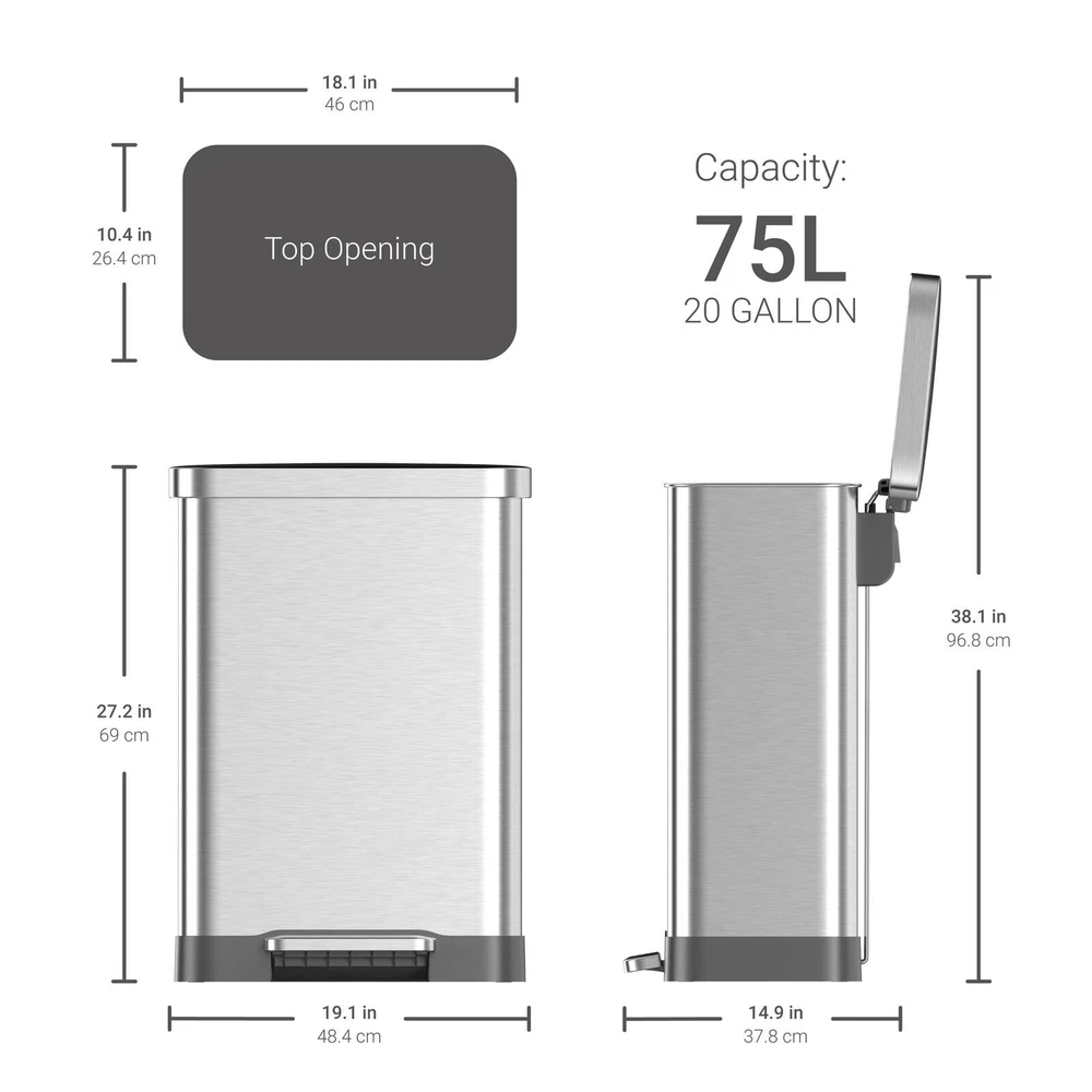Triple Strength Glucosamine Chondroitin Tablets Dietary Supplement 340 Count 38.03 USD 40.46 USD Free shipping 6% off Portable Training Kit for 9mm Dry Fire Laser Training System for Target Practice 109.99 USD Free shipping 36 Mega Rolls 2-Ply Toilet Paper Soft Strong Septic Safe Bulk Pack 11520 Sheets 29.14 USD 31.0 USD Free shipping 6% off Metal Storage Cabinet with Doors and Shelves 5 Tier Metal Pantry Closet Cupboard 175.47 USD Free shipping 118" Wide Baby Gate Metal Safety Playpen Fireplace Fence for Toddler/Pet/Dog 129.57 USD Free shipping 6 Foot Bi-Fold Plastic Folding Table Black Dinning Table Portable Seats 8 Adults 44.21 USD 47.03 USD Free shipping 6% off Fan Bedroom Oscillating Standing Fans DC Motor 80ft Air Circulator 8 Speeds New 79.1 USD 84.15 USD Free shipping 6% off 4 Drawer Unit Plastic Garage Cabinets Storage Large-Capacity Flat Organizer Gray 95.17 USD 101.25 USD Free shipping 6% off Ergonomic Gaming Recliner Adjustable Footrest PU Leather Comfortable Sofa Chair 229.46 USD Free shipping 17 Inch Sound Bars for TV Bluetooth W/ Subwoofer Surround System Wall Mountable 72.37 USD 76.99 USD Free shipping 6% off 1 HP Automatic Submersible Water Pump 3450 GPH Sump Pump Pool Flood Basement New 41.35 USD 43.99 USD Free shipping 6% off 2ft Heavy Duty 3 Outlet Extension Cord 15A Indoor Outdoor Power Adapter New 15.95 USD 16.97 USD Free shipping 6% off Introducing the Qualiazero 20-Gallon Stainless Steel Trash Can - the perfect solution for your kitchen waste management needs. This sleek and modern trash can features a soft-close lid that closes quietly without slamming, making it a great choice for households with children or pets. The fingerprint-proof commercial stainless steel surface stays clean longer and is easy to maintain, ensuring your kitchen remains looking its best. The sturdy foot pedal allows for hands-free operation, making it convenient for you to dispose of your waste. For regular cleaning, simply use a damp microfiber cloth. The non-skid base keeps the trash can in place, even when the lid is opened, ensuring that it won't tip over or move around. With a 20-gallon / 75L capacity, this trash can is ideal for busy kitchens and families. For a perfect fit, use Qualiazero 21-Gallon trash bags, specially designed to fit this trash can. Invest in the Qualiazero 20-Gallon Stainless Steel Trash Can today and enjoy a cleaner, quieter and more convenient kitchen waste management solution. Soft-close lid closes quietly without slamming Fingerprint proof commercial stainless steel stays clean longer Sturdy foot pedal keeps your hands free For regular cleaning, use a damp microfiber cloth Non skid base keeps your trash can in place 20GAL / 75L Ideal for Kitchen For a perfect fit, use our Qualiazero 21 Gallon trash bags Cordless Cleaning Brush with 8 Replaceable Brush Heads Electric Spin Scrubber US 41.34 USD 43.98 USD Free shipping 6% off Epoxy Resin Kit 1 Gallon-Crystal Clear UV Resistant Self Leveling Food Safe New 61.0 USD 64.89 USD Free shipping 6% off Digital Multimeter and Analyzer TRMS 6000 Counts Volt Meter Ohmmeter Tester 38.25 USD 40.69 USD Free shipping 6% off D-Shaped 2'' Thick Chair Cushions Removable Machine Washable Cover and Ties 47.55 USD 50.59 USD Free shipping 6% off USB Outlets 15 Amp Wall Outlet with USB Ports 21W USB Outlets Receptacles New 55.83 USD 59.39 USD Free shipping 6% off Charcuterie Boards Set Large Bamboo Cheese Board Set House Warming Gifts New 41.35 USD 43.99 USD Free shipping 6% off 12 Pack 5CCT LED Recessed Lighting 6 Inch Dimmable Can Lights 965LM New 56.86 USD 60.49 USD Free shipping 6% off Electric Spin Scrubber Cordless Cleaning Brush Scrubber for Home 2 Speeds New 51.69 USD 54.99 USD Free shipping 6% off 20x20x1 Air Filter MERV 8 Dust & Pet Defense Electrostatic Pleated Filters New 45.49 USD 48.39 USD Free shipping 6% off Laser Level 100ft Self-Leveling Green Cross Line Laser for Picture Hanging New 41.33 USD 43.97 USD Free shipping 6% off Melamine 12 Pc Dinnerware Set Dinner Plates Bowls Salad/dessert Plates New 63.6 USD 67.66 USD Free shipping 6% off 3/8-Inch Drive Click Torque Wrench 15-80 Ft.-lb, 20.4-108.5 Nm Workshop Tools 40.13 USD 42.69 USD Free shipping 6% off