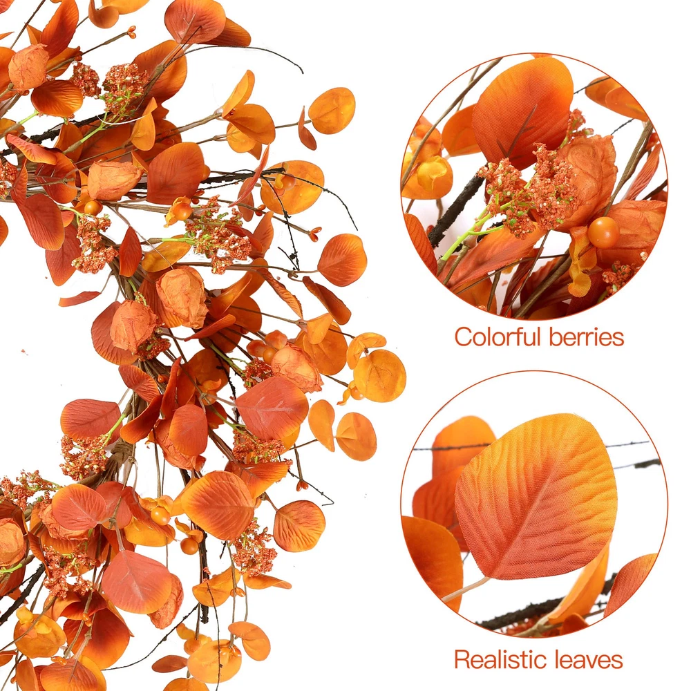 20-Inch Autumn Eucalyptus Berry Wreath for Fall Front Door Decor