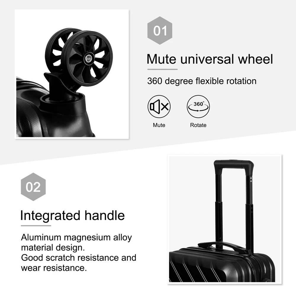 Fly Easy: This 20-inch carry-on luggage meets airline requirements for overhead storage. Seamless travel without check-in hassles! Effortless Glide: Navigate busy terminals with ease. Our carry-on luggage features 360° spinner wheels for smooth gliding and is equipped with a combination lock to enhance luggage security. Pack smart, pack more! With innovative dividers and a mesh sandwich bag, this suitcase optimizes space. The wear-resistant material keeps your belongings safe on the go. Durably Designed: Embrace durability with our ABS material suitcase. Lightweight for lifting, yet robust against the rigors of travel. Trust in luggage that's built to last mile after mile. Convenience on the Go: Designed for the modern traveler, this Carry-On features an adjustable handle with a Free Shipping Over $49.99* Details 20-Inch Carry-On Luggage Product Description: Fly EasyThis 20-inch carry-on luggage meets airline requirements for overhead storage. Seamless travel without check-in hassles! Effortless GlideNavigate busy terminals with ease. Our carry-on luggage features 360° spinner wheels for smooth gliding and is equipped with a combination lock to enhance luggage security. Pack smart, pack more! With innovative dividers and a mesh sandwich bag, this suitcase optimizes space. The wear-resistant material keeps your belongings safe on the go. Durably DesignedEmbrace durability with our ABS material suitcase. Lightweight for lifting, yet robust against the rigors of travel. Trust in luggage that's built to last mile after mile. Convenience on the GoDesigned for the modern traveler, this Carry-On features an adjustable handle with a two-gear lever. Enjoy comfort tailored to your height and travel stress-free.