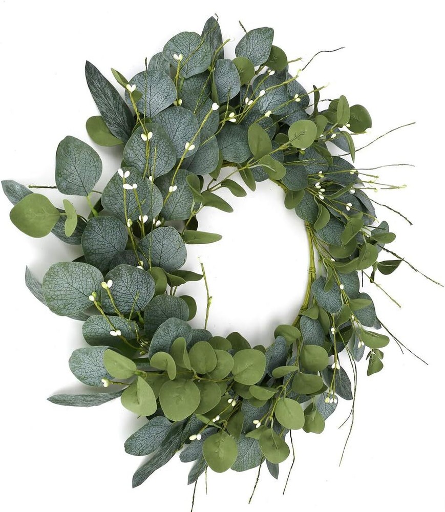 20inch Eucalyptus Wreaths for Front Door Spring and Summer 20 Inches, Green Artificial Door Wreath: This eucalyptus wreath is handmade with two different kinds of eucalyptus leaves. The leaves are very thick and many twigs with small lovely berries stretch. The whole green wreath is full and realistic,Bring life and vitality to your home decoration. Perfect Size: The 20-inch eucalyptus wreath will draw attention wherever it is placed. Once unpacked, you simply fluff it up and you'll have a lovely door wreath,make your front door decor stand out! Versatile Decoration: This green wreath is perfect for any room or space and will bring your space closer to nature and delight you every time. Of course, the eucalyptus wreath can also be used in holiday, party or wedding decorations. High-quality: This eucalyptus wreath with green main color is suitable for all seasons and is made of long-lasting and durable materials, made by pure hand, focusing on every detail to perfection, never wilting can be used for many years. Service Guarantee: Customer satisfaction is our top priority. We not only provide high-quality eucalyptus wreath but also provide satisfactory service. So if you have any questions, please don’t hesitate to contact us, and we will give you a satisfactory solution. Shipping We offer FREE shipping on all orders! We ship within Three business days of payment, usually sooner. We use a selection of shipping services such as UPS, FedEx, USPS etc. We only ship to the lower 48 states, no APO/FPO addresses or PO Boxes allowed. Local pickups and combined shipping options are not provided at this time. Return You can return a product for up to 30 days from the date you purchased it. Any product you return must be in the same condition you received it and in the original packaging. Please keep the receipt. Customer satisfaction is very important to us. If you have any problem with your order, please contact us and we will do our best to make you satisfied. Contact Us If you have any queries, please contact us via ebay. We usually respond within 24 hours on weekdays. Please visit our eBay store to check out other items for sale! Thank you for shopping at our store.
