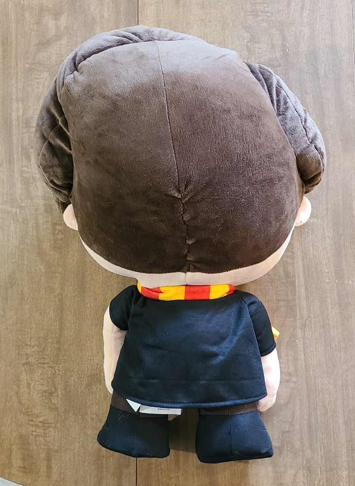 This 20-inch tall Harry Potter plush doll is perfect for any fan of the franchise. Made by Gemmy Industries and Warner Bros, this porcelain greeter is a must-have for collectors and enthusiasts alike. Its adorable design and attention to detail make it a great addition to any Harry Potter or fantasy collection. The doll is made in China and features no modifications. It is an officially licensed product and is ideal for display or play. Get your hands on this fantastic item today and add a touch of magic to your home or collection. His head is so heavy he doesn't want to stand on his own even with his weighted feet.