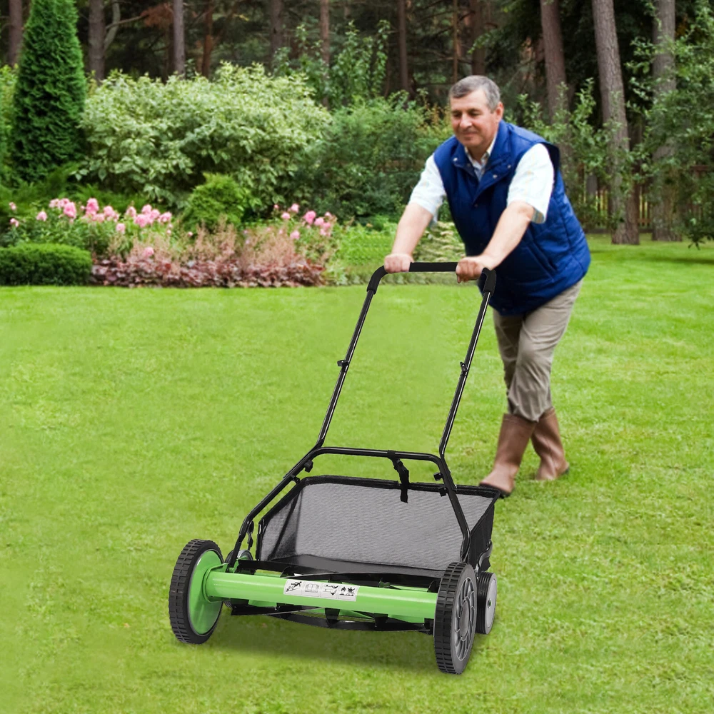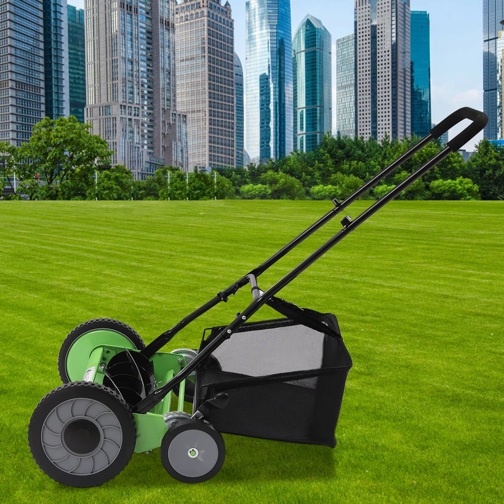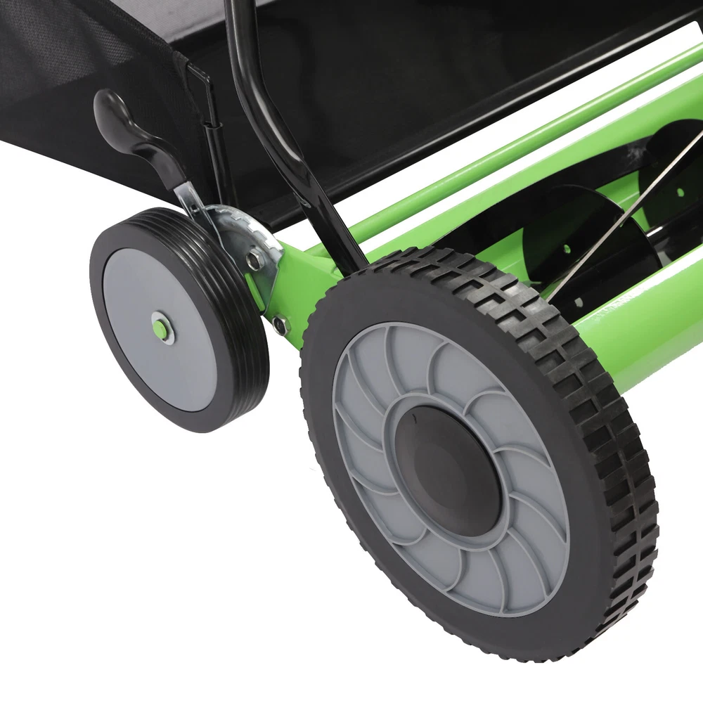 Package Included 1*Manual Lawn Mower 1*Collection Bag 1*English User Manual 20" Lawn Mower Grass Cutter Machine, with Collection Box,Push Reel Mower 5-Blade Welcome~ Description Let's begin to enjoy mowing! Everyone wants to have a perfect lawn, and this requires careful trimming. When you use this manual lawn mower to mow the grass, you will no longer smell the unpleasant gasoline smell and hear the annoying noise, but the fragrance of the grass and the crisp bird's voice. Mowing will turn from an uncomfortable task into an activity that relieves physical and mental stress. Specification Material: 65Manganese Steel, PE, Sponge Color: Green, Black Style: Reel Process: Heat Treatment Operation Mode: Manual Power Source: Self-propelled Number of Blades: 5 Number of Height Gears: 9 Adjustable Mowing Height: 3.4-6.4cm/1.33-2.51in Cutting Wideness: 50.8cm/20in Mowing Area: 0-500m 2 /0-5381ft 2 Gross Weight: 15kg/33.06lbs Net Weight: 14kg/30.86lbs Package Size: 69*47*26cm/27.16*18.5*10.23in Product Size: 67*45cm/26.37*17.71in Product Height: 1.07m/3.51ft(The Height Varies According to the Angle) U-shape Rack Size: 68*36cm/26.77*14.17in Wheel Diameter: 25cm/9.84in Package Included 1*Manual Lawn Mower 1*Collection Bag 1*English User Manual All Accessories Needed for Installation Key Features Sharp Blades : The mower's blades are made of high-quality 65 manganese steel while using a superb heat treatment process to create sharp, wear-resistant, strong, impact-resistant blades. Adjustable Mowing Height : The mower's cutting height is 9-gear adjustable from 1.33 to 2.51 inches allowing you to take better care of your garden or lawn as you see fit. Sturdy and Durable : The thickened U-shaped tube and six sets of set screws provide a stable structure for the product making it sturdy and durable. Large Mowing Area : The sharp hob set, 20-inch cutting width, and large diameter anti-skid wheels make it easy to cut approximately 5,381 feet 2 of lawn. Easy to Maintain : This mower without a motor allows you to not have to worry about buying gas, checking which part of the power system is wrong, and replacing complicated parts. Environmentally Friendly and Economical : The mower is driven by human power to turn the wheels and thus drive the blades to cut, so it is more energy efficient, environmentally friendly, and economical compared with electric or fuel ones. Save Time and Effort : The 9.84-inch/25 cm diameter anti-skid wheels greatly increase the grip of this mower, allowing you to easily push it on your lawn. The mower is also equipped with a handle with non-slip sponges. Space saving : The product features a detachable design allowing the main unit, handle and grass collection bag to be stored separately, which doesn't take up too much space. Details Large Capacity Collection Bag : There is a large capacity black collection bag at the back of this mower to collect the excess grass that is cut so you can easily clean up the field. It allows you to use the collected grass for more purposes as well. Non-slip Wheels : The uneven, non-slip surface of the wheels increases the friction with the lawn to prevent slipping. Wider Sponge Handle : The 14.17-inch wider handle allows you to hold it with both hands, which is more labor-saving and convenient. And the soft sponge brings you a comfortable touch. Application The product is suitable for lawn mowing in villas, parks, gardens, etc.. Notes Please allow the slight color difference caused by the shooting light and 1-3cm error due to manual measurement. Please make sure you do not mind before you order. tu1 Payment Delivery details Terms of sales About us Contact us Payment We accept ebay payment 。 Fees such as import duties, taxes are not included in the item price or shipping costs. These charges are the buyer's responsibility. Delivery details Shipping: 2-9 working days to: USA Terms of sales We maintain high standards of excellence and strive for hundred percent customer satisfaction. Feedback is very important to us. We hope that you contact us immediately before you give neutral or negative feedback, so that we can address your concerns. It is impossible to address issues if we do not know about them! About us Your satis faction is our ultimate goal. We work hard to earn your trust and future business. Our certified technicians have tested each item before shipping. The unit comes with 1 year limited warranty on all manufacturing defects. a) If you receive a defective item, you may return it or ask for a discount. Please contact us within 14 days after you receive the package. b) What you returned must be intact and in its original packaging as re? u. Customer is responsible for shipping costs of the returned item. c) We will cover the cost of shipping back t with the shipping rate indicated in the registration page. We will send you a new unit or refund the full payment you paid. Thank you. Contact us Business Hour Business Hour: Monday To Friday: 8:30 AM to 5:00 PM (Beijing China time) Due to time zones, our reply to your questions may not be immediately. But within above working time, we will reply your email within 24 hours. If it's non-workdays, please kindly be patient and wait till Monday. Please contact us with ebay message. Please feel free to contact us if you have any questions. Monday To Friday: 8:30 AM to 5:00 PM (Beijing China time) Due to time zones, our reply to your questions may not be immediately. But within above working time, we will reply your email within 24 hours. If it's non-workdays, please kindly be patient and wait till Monday. Please contact us with ebay message. Please feel free to contact us if you have any questions. shipping notice Can not ship to Puerto Rico,Alaska/Hawaii Brand ( 品牌 ) SENDERPICK Features Fast Shipping, Durable Material, High Quality, Stable Perfromance, Creative Design Type Push Lawn Mowers Material 65Manganese Steel, PE, Sponge Model n/a Manufacturer Warranty 2 Years Voltage n/a Power Source Manu
