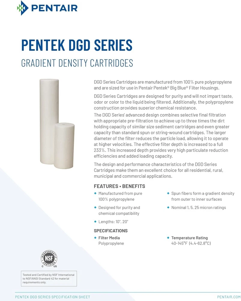 20-Inch Whole House Sediment Filter Cartridge - Dual-Gradient Density, 5 Micron ‹ › ‹ › ‹ › ‹ › ‹ › ‹ › 20-Inch Whole House Sediment Filter Cartridge -Dual-Gradient Density, 5 Micron Features: Designed to remove dirt, sand, silt, and particulates from water Dual-gradient density for superior particulate reduction Tested and certified by NSF International to NSF/ANSI Standard 42 Made with 100% pure polypropylene for chemical resistance Sized for use in all 20 inch Big Blue filter housings Replace every 6 months for best results Benefits: Protects appliances and keeps water clean High-flow pre-filter with 3X dirt holding capacity Will not impart taste, odor, or color to water Superior chemical resistance Increased filter depth for high particulate reduction efficiencies Great for residential, rural, municipal, and commercial applications Why choose our 20-Inch Whole House Sediment Filter Cartridge? Don't settle for subpar water filtration - choose our 20-Inch Whole House Sediment Filter Cartridge for superior performance and peace of mind. With dual-gradient density and NSF certification, this cartridge is designed to provide the best possible water quality for your home or business. Plus, its 100% pure polypropylene construction ensures chemical resistance and long-lasting durability. Upgrade your water filtration system today with our high-flow pre-filter cartridge - you won't be disappointed! Shipping Free & Fast Shipping - We offer free shipping to most of the USA with a normal delivery time of 3-7 days. However, due to the current situation, additional delivery time (up to 3 weeks) may be required for some items. Alternative Carriers - We may use alternative carriers (e.g. USPS, FedEx, UPS, etc.) to ensure your package arrives safely and on time. Due to the use of multiple carriers, we are unable to provide a tracking number automatically. Handling Time - Orders are processed and shipped within 1-2 business days of receiving cleared payment. Shipping Restrictions - Shipping to Alaska, Hawaii, Puerto Rico, Guam, and other US territories may incur shipping charges or delivery restrictions. Please contact us before ordering, or your order can be refunded/cancelled. State Restrictions - There may be restrictions based on your state of purchase. For example, certain items may not be shipped to California due to state regulations. Contact for Tracking Updates - If you require tracking updates or have any concerns about the delivery of your order, please feel free to contact us, and we will be happy to assist you. Return 30-Day Hassle-Free Returns - We want you to be completely satisfied with your purchase. If you are not, you can return the item within 30 days of receiving it for a full refund or exchange. Easy Return Process - To start a return, simply contact us and we will provide you with a prepaid return shipping label and detailed instructions. Restocking Fee - There are no restocking fees for returns. However, the buyer is responsible for return shipping costs if the return is not due to a seller's error. Refund Processing Time - Refunds will be processed within 5 business days of receiving the returned item in its original condition. Payment We accept all major credit cards, PayPal, and Apple Pay for your convenience. Your payment information is secure and encrypted to ensure a safe and seamless transaction. Please complete your payment within 3 days of purchase to avoid any delays in shipping. Feedback Your feedback is extremely important to us. We strive to provide the best products and customer service possible. If you are satisfied with your purchase, please take a moment to leave us a positive review. If you have any concerns or issues with your order, please contact us before leaving negative feedback. We are committed to resolving any problems and ensuring your satisfaction. Contact Us If you have any questions or concerns, please feel free to reach out to our customer support team. You can contact us through the eBay messaging system. We are available Monday to Friday, 9:00 am to 5:00 pm EST, and we will do our best to respond to your inquiry within 24 hours. Thank you for supporting our small family business!