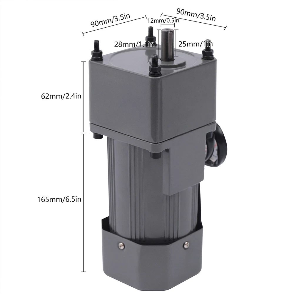 90W Motor Adjustable Speed Frequency Inverter Motor with Gear Controller and Bracket (20 K) Description This gear adjustable motor is primarily used to reduce the speed of a series of gears, thereby producing more power torque. This motor has high power, and high torque, and can also be switched for speed regulation. This high-quality motor with excellent performance is suitable for various industries. Details Copper Coil: The copper coil has better heat dissipation, good conductivity, and longer service life. Thickened Metal Gear: The gear mechanism is precise, the thickness is thicker, the wear resistance is good, the service life is prolonged, and the motor torque is increased. Application It is widely used in food packaging, food mixing, office equipment, medical equipment. Welcome 90W Motor Adjustable Speed Frequency Inverter Motor with Gear Controller and Bracket (20 K) Description This gear adjustable motor is primarily used to reduce the speed of a series of gears, thereby producing more power torque. This motor has high power, and high torque, and can also be switched for speed regulation. This high-quality motor with excellent performance is suitable for various industries. Key Features Increasing Power : This motor achieves the purpose of reducing speed through the arrangement of gears, thereby generating more power and making your machine run faster. Stable Performance: The motor adopts copper coils with better heat dissipation, and the torque is large, which can keep the overall performance of the motor stable. Low Noise: This motor adopts an aluminum alloy casing, which has low vibration and low noise during operation. Small Size: This motor is compact in structure and small in size, and will not take up too much space. Adjustable Speed : The motor is equipped with a speed regulator, you can adjust the speed according to your various needs to achieve better power matching and achieve high efficiency of a machine. Complete Accessories: The product includes a complete set of accessories. In addition to the motor, it is also equipped with a bracket, a reducer, and a speed regulator. You do not need to configure other accessories separately, which is very convenient and simple. Long Service Life: The product is made of high-quality and high-strength metal, and the metal surface is painted, so it is anti-rust and anti-corrosion, and durable. High Torque: The motor has large torque, strong speed-up capability, and a stronger overload capacity, and can reach the power required by the machine faster. Trustworthy: The manufacturer has been committed to the production of motors and gear motors for a long time, and the mechanical equipment is excellent. This motor has passed the 3C certification, and its quality and professionalism are quite trustworthy. Easy to Use: The overall motor is complete, and the governor is also equipped with corresponding numbers and presentations. You only need to adjust to the required speed, and the operation is very simple. Details Copper Coil: The copper coil has better heat dissipation, good conductivity, and longer service life. Thickened Metal Gear: The gear mechanism is precise, the thickness is thicker, the wear resistance is good, the service life is prolonged, and the motor torque is increased. Application It is widely used in food packaging, food mixing, office equipment, medical equipment, packaging machinery, printing machinery, leather shoe polishing machinery, metal cutting machine tools, etc. It is suitable for the packaging industry, machinery and machinery industry, transportation equipment, textile machinery, electric welding machine, automobile industry, etc. Specification Material: Iron, Aluminum Alloy, Copper Color: Black Shape: Rectangular Gross Weight: 5.13kg/11.3lbs Product Weight: 4.50kg/9.9lbs Package Size: 28.5*24.1*12.5cm/11.2*9.5*4.9inch Reducer Size: 6.2*9*9cm/2.4*3.5*3.5inch Motor Size: 16.5*9*9cm/6.5*3.5*3.5inch Shaft Size: 1.2*2.8cm/0.5*1.1inch Key Depth: 2.5cm/1.0inch Keyway Size: 0.4cm/0.2inch Distance Between Diagonal Mounting Holes: 10.4cm/4.1inch Distance Between Mounting Holes on the Same Side: 7.35cm/2.9inch Diameter of Disc Stop: 3.4cm/1.3inch Speed Regulator Size: 6*9*10cm/2.4*3.5*3.9inch Voltage: 110V Rated Power: 90W Engine Speed Ratio: 20K Package Included 1 x Motor 1 x Reducer 1 x Speed Regulator 1 x Bracket Notes Do not plug or unplug the lead wire when the power is on. The product does not include a power cord, which needs to be purchased separately. Please allow the slight color difference caused by the shooting light and 1-3 cm error due to manual measurement, and make sure you do not mind before ordering. Payment Delivery details Terms of sales About us Contact us Payment We accept ebay payment 。 Fees such as import duties, taxes are not included in the item price or shipping costs. These charges are the buyer's responsibility. Delivery details Shipping: 2-9 working days to: USA Terms of sales We maintain high standards of excellence and strive for hundred percent customer satisfaction. Feedback is very important to us. We hope that you contact us immediately before you give neutral or negative feedback, so that we can address your concerns. It is impossible to address issues if we do not know about them! About us Your satis faction is our ultimate goal. We work hard to earn your trust and future business. Our certified technicians have tested each item before shipping. The unit comes with 1 year limited warranty on all manufacturing defects. a) If you receive a defective item, you may return it or ask for a discount. Please contact us within 14 days after you receive the package. b) What you returned must be intact and in its original packaging as re? u. Customer is responsible for shipping costs of the returned item. c) We will cover the cost of shipping back t with the shipping rate indicated in the registration page. We will send you a new unit or refund the full payment you paid. Thank you. Contac