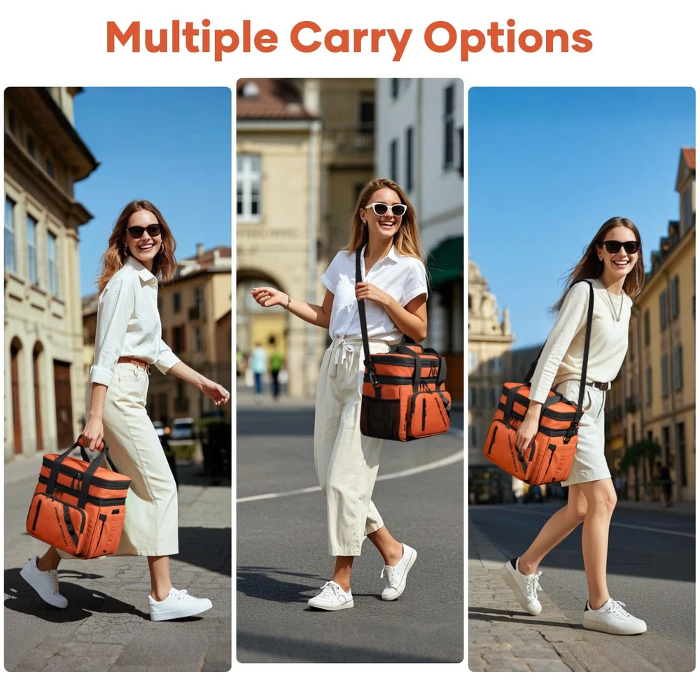 Large Capacity: lunch bag women uses an expandable design, divided into double layers, the lower layer can hold 18 cans of 330ml cans of drinks. The upper layer can hold some snacks, fruit, or lunch boxes, easily solving all your lunch needs. Also, with 2 side pockets, 2 front pockets,1 back pocket, and 1 Inside Mesh Pocket, these 6 pockets increase the practicality of this large lunch box Leakproof & Easy to Clean: The lunchbox men is made of extra-thick PEVA soft lining and heat-pressed seamless stitching to ensure leakproof and keeps food fresh. Premium SBS two-way zippers are smooth and durable for opening and closing. Besides, it is easy to clean, just wipe it with a napkin Excellent Thermal Insulation: The insulated lunch bag adopts 5 layers insulation materials, the exterior layer is rip-stop polyester fabric, the inner layer is made of 210D waterproof and food-grade PEVA material, and the middle layer is specially filled with 5mm thick insulating foam provides excellent protection for your food or drinks, which can keep cold or warm for up to 16 hours Multi-function Design: lunch box for men has a special keychain design on the front pocket, which is convenient for you to take out your keys to prevent loss. The side tissue pocket design allows you to take tissues at any time during the meal. Another inside mesh pocket is designed for placing knives, forks or spoons. An ideal gift choice for family and friends! Convenient Portable: This cooler lunch bag comes with an adjustable shoulder strap and durable handle. The lightweight design is very suitable for women, men and adults, you can crossbody or handheld, foldable and does not take up space, easy to carry. Perfect for office, travel, hiking, fishing, picnics, and various outdoor activities