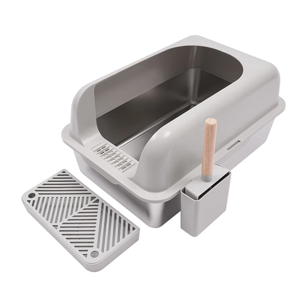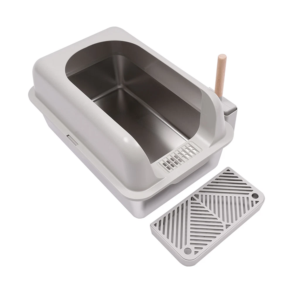 Wow, this litter box is a total game-changer! The stainless steel is so easy to clean and the high guardrail really keeps the mess contained. It feels incredibly sturdy and modern, and my cat seems to love the extra space. Highly recommend!