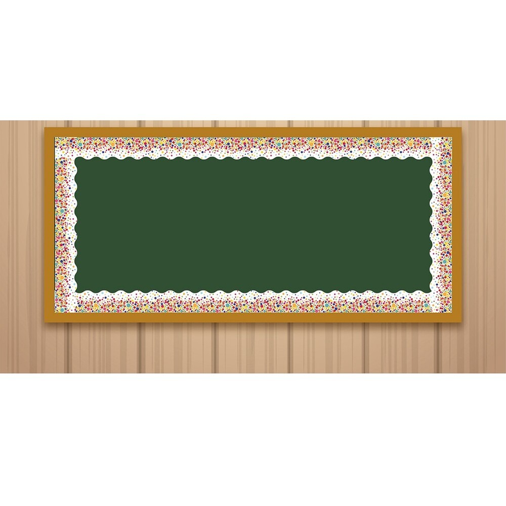 These scalloped dot stickers are a game-changer for classroom or home decor! The self-adhesive backing makes them so easy to apply on bulletin boards, walls, or desks—no mess or hassle. I love the vibrant colors and playful pattern that instantly brighten any space. Perfect for back-to-school setups, playrooms, or creative displays, the roll is long enough for multiple projects and can be cut to fit any design. Sticks well but removes cleanly, great for seasonal changes. Highly recommend for teachers, parents, or craft lovers!