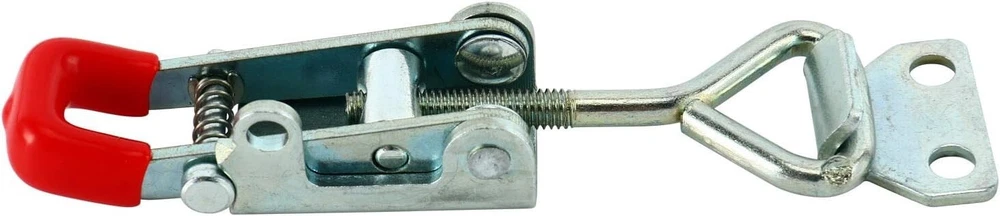Product Description Specifications: Model: 4012 Size:2.7''*0.8'' Locking Load: 1KN; Ultimate Load:3KN ; Material : Metal, Plastic ; Finish:Zinc-plated/Polish ; Color: red, Silver Tone ,Weight : 500g Use: Convenient to operate,adjustable latch ,locking force is adjustable Unique Self-lock Adjustable Hand Tool ,prevent the latch accidental opening Plastic cover handle for easy, safe and comfortable operation. Widely used in different fields,vehicle,packing case,mechanical equipment,oscillatory machine. Package included:20 PCS 4012 Cabinet Box Lever Handle Toggle Catch Latch Lock Clamp Hasp