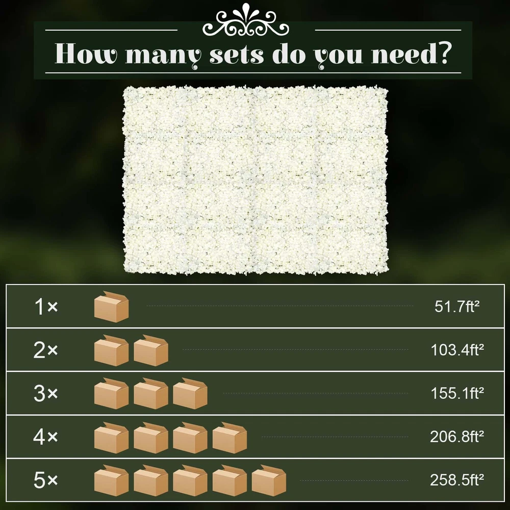 Specifications Material: Silk, Plastic Shape: Rectangular Color: White Style: Elegant Assembly Required: Yes Type: Simulation Flowers Indoor/Outdoor Usage: Outdoor, Indoor Usage: Wedding, Outdoor, and Photography Props Craft: Embossing, Injection Molding, Screen Printing Number of Items: 20 Gross Weight: 6.8kg/15lbs Net Weight: 5.7kg/12.56lbs Single Product Size: 60*40cm/23.6*15.74in Package Size: 63*43*30cm/24.8*17*11.8in Package Included 20*Flower Walls 20PCS Artificial Flower Wall Panel Floral Backdrop Wedding Party Home Decor Description Description Flower decoration has always been a preference for many people, but the price and maintenance of real flowers can be very annoying. This simulated flower wall decoration is a good choice! It is a colorful, realistic form, suitable for a variety of decorative occasions. It can be used for a long time without extra care. You can use other kinds of flowers, foliage, and some small accessories, such as small bulbs, bells, fruits, and fairy lights to make more decorating possibilities. Key Features Realistic Shape: The pure white flowers naturally cluster together, and the embossing, injection molding, and screen printing processes give them the unique beauty of flowers and make it look more realistic. High-Quality Material: These flower backdrops are attached by plastic backplanes, which are more durable and easy to clean. With the silk material, it is resistant to wind and sunlight and can be used outdoors for a long time. Easy to Assemble: The edge of the plastic backplane behind each artificial flower wall is equipped with plastic holes and corresponding plastic nails. You just need to insert the plastic nails into the plastic holes by hand, and put the flower wall together! Unleash Your Imagination: For DIY lovers, it can provide you with more creativity to make wonderful and unique backgrounds. Decorate your party with colored lights, balloons, and other decorations(not included)! Wonderful Symbolism: The flowers represent blessings, romance, harmony, and optimism, making life full of love and making your party unique and meaningful! 20-piece Set: A total of 20 flower walls are included to fully satisfy your needs. The large size (23.6*15.74in Each) can create a luxurious and beautiful background for your various parties and gatherings. Artificial Flowers: It is reusable for you to save costs. Also, it does not require maintenance to save your effort, and it is great for people who are allergic to flowers. Easy to Clean: Plastic and silk are not easy to get dirty. You can put them away after use to prevent dusting. Even if they get dirty, you can simply wipe them gently with a soft, dry cloth or fabric duster to restore cleanliness. Wide Applicability: This flower wall can be installed on concrete walls, wooden walls, or plasterboard by using non-marking nails and hammers (not included) to decorate the wall without causing damage to it. It can also be installed on glass walls and marble walls by using sticky hooks (not included). Its good applicability can meet your various needs. Details Fine Grid: The back is designed with plastic grids that are hard-wearing and easy to bend and stretch while being easy to hang and fix. Reinforced Flower Heads: The flower head has been specially treated with extra glue to make it stronger and less likely to fall off even when placed outdoors. Application It is ideal for bridal showers, baby showers, and any decoration of parties including birthday parties, graduation parties, proposals, engagement parties, weddings, anniversary parties, opening ceremonies, grand openings, and receptions. It also can be used both indoors and outdoors. Specifications Material: Silk, Plastic Shape: Rectangular Color: White Style: Elegant Assembly Required: Yes Type: Simulation Flowers Indoor/Outdoor Usage: Outdoor, Indoor Usage: Wedding, Outdoor, and Photography Props Craft: Embossing, Injection Molding, Screen Printing Number of Items: 20 Gross Weight: 6.8kg/15lbs Net Weight: 5.7kg/12.56lbs Single Product Size: 60*40cm/23.6*15.74in Package Size: 63*43*30cm/24.8*17*11.8in Package Included 20*Flower Walls Notes Due to transportation reasons, it is normal for the flowers to deform. Please use a hair dryer to blow with hot air. If cleaning is required, please gently wipe with a dry towel. Please try to avoid prolonged direct sunlight and stay away from ignition sources. Please note that plastic products may have a slight odor that will dissipate after ventilation. Please allow the slight color difference caused by the shooting light and 1-3cm error due to manual measurement, and make sure you do not mind before you order. Payment Delivery details Terms of sales About us Contact us Payment We accept ebay payment 。 Fees such as import duties, taxes are not included in the item price or shipping costs. These charges are the buyer's responsibility. Delivery details Shipping: 2-9 working days to: USA Terms of sales We maintain high standards of excellence and strive for hundred percent customer satisfaction. Feedback is very important to us. We hope that you contact us immediately before you give neutral or negative feedback, so that we can address your concerns. It is impossible to address issues if we do not know about them! About us Your satis faction is our ultimate goal. We work hard to earn your trust and future business. Our certified technicians have tested each item before shipping. The unit comes with 1 year limited warranty on all manufacturing defects. a) If you receive a defective item, you may return it or ask for a discount. Please contact us within 14 days after you receive the package. b) What you returned must be intact and in its original packaging as re? u. Customer is responsible for shipping costs of the returned item. c) We will cover the cost of shipping back t with the shipping rate indicated in the registration page. We will send you a new unit or refund the full payment you paid. Thank you. Contact us