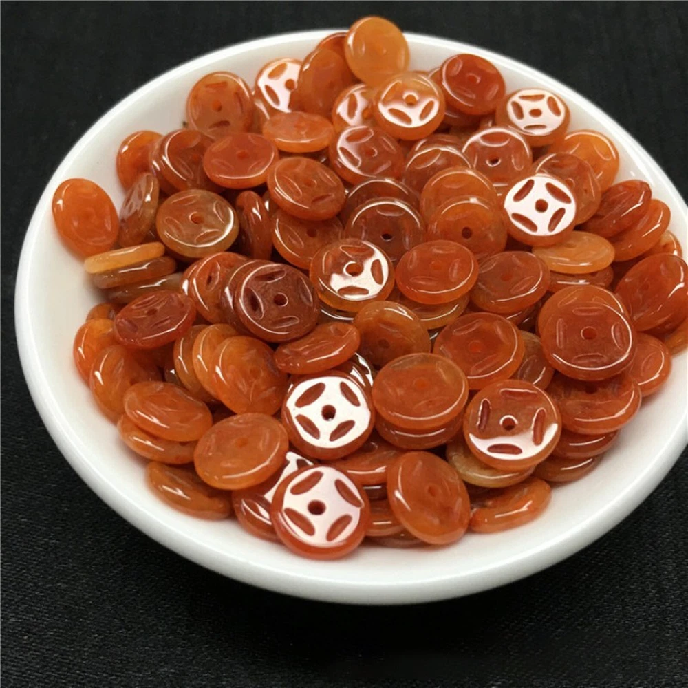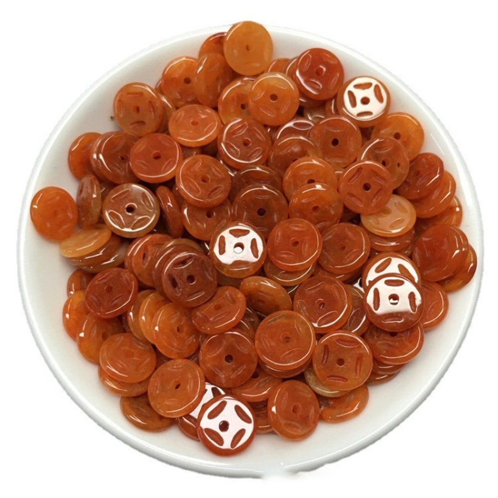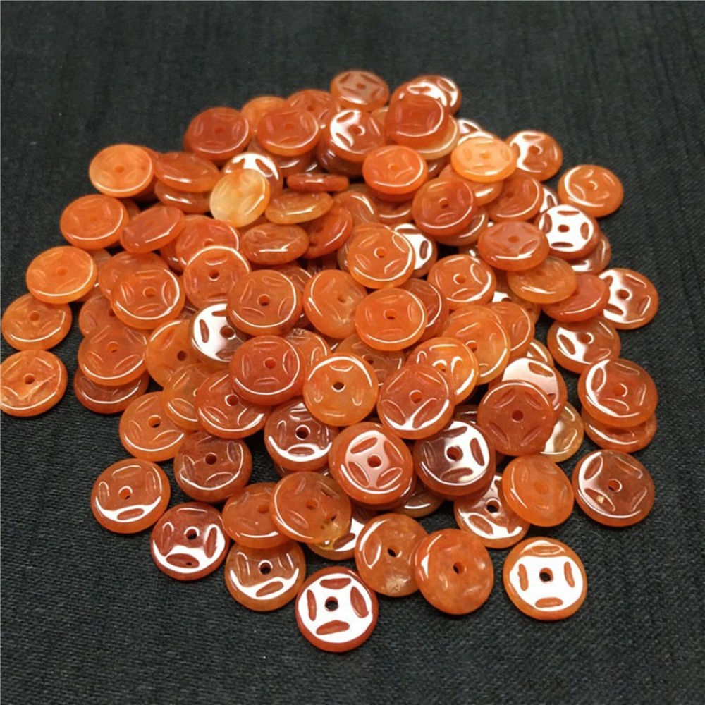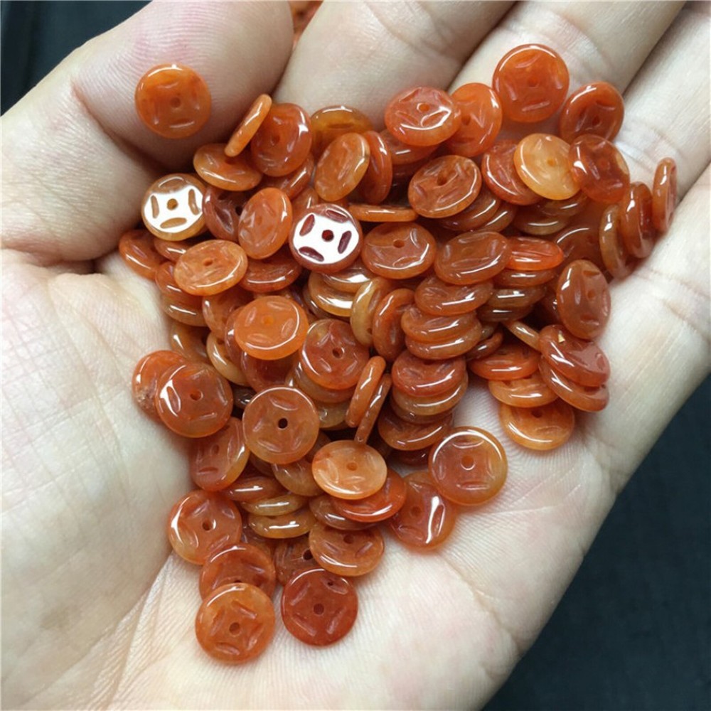20PCS Grade A Natural Jadeite Red Round Coin Beads 9mm DIY Loose Pendants
