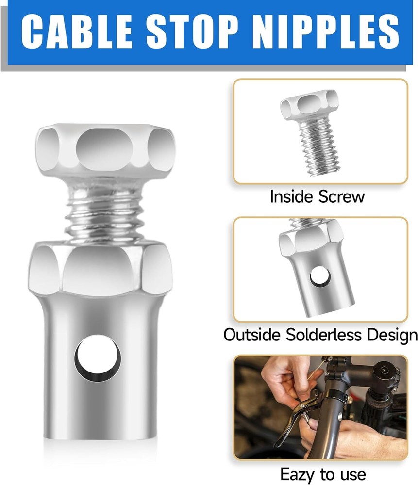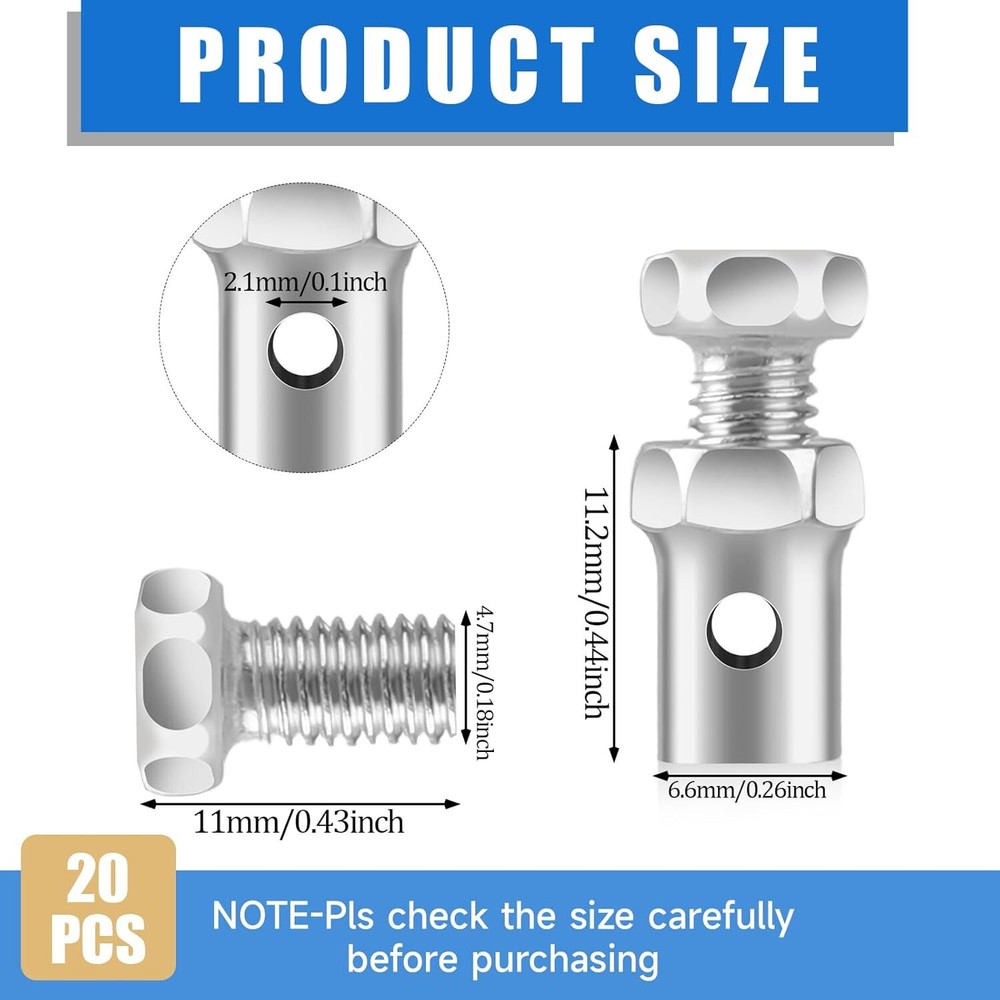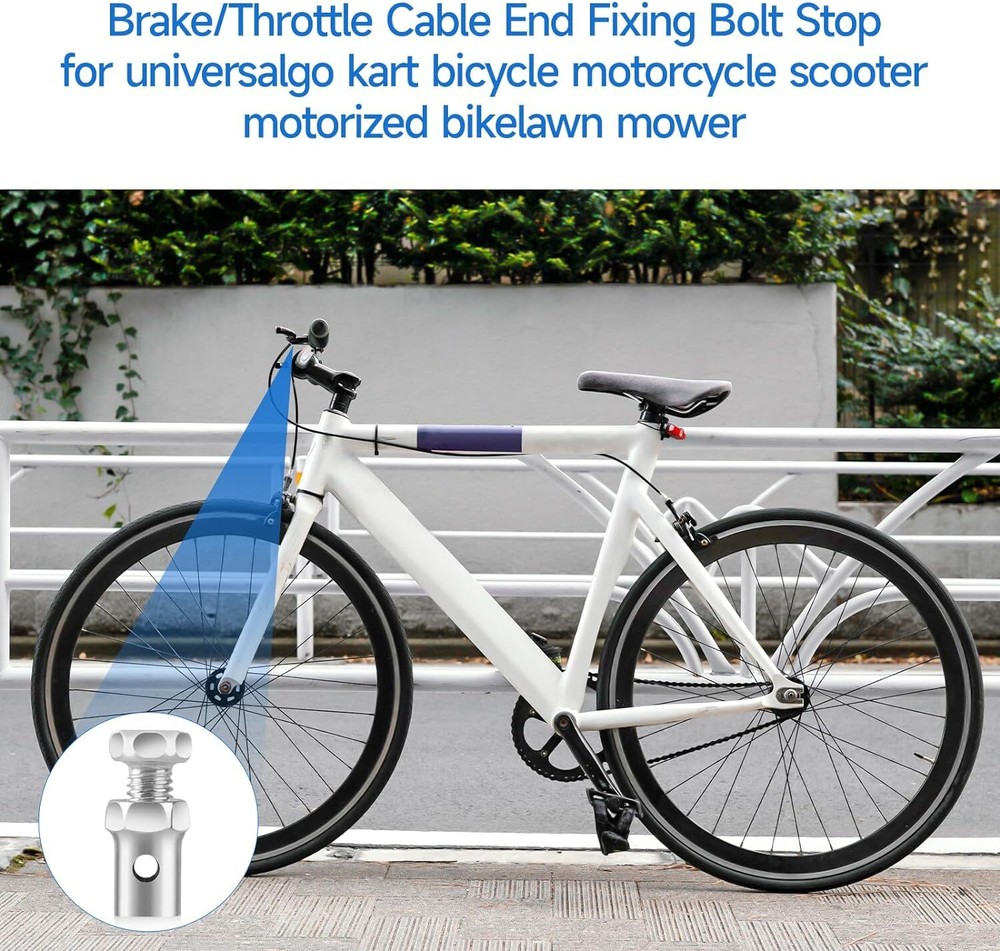 20 Pack 1/8" Universal Throttle Cable Ends Stop Throttle Brake Cable Parts Lock Material: The brake cable stop ends are made of matal material, corrosion resistant, sturdy and built to last. Size: Universal throttle cable ends wire hole diameter is 1/8". Applications: Suitable for go kart, motorized bike, motorcycle, jet ski, garden tractor, scooter, lawn mower, etc. Practical: The throttle brake cable ends are ideal for repairing and securing your old or broken throttle/brake cable. Set of 20: In total of 20 pieces cable stop.