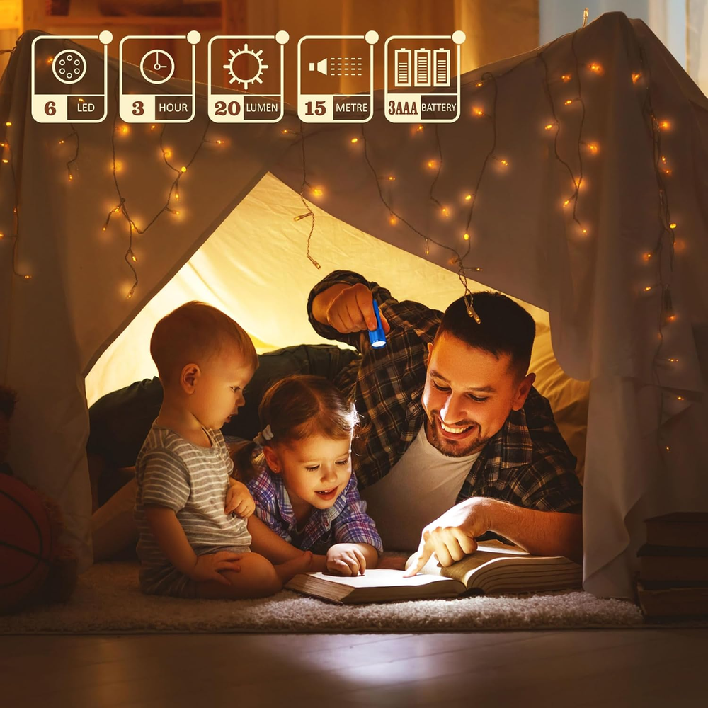 SUPER BRIGHT: Each mini flashlight is equipped with 6-piece Bright LED, provides with 20 lumens of light output. Suitable for night walk, bedroom reading, camping, hiking, fishing, nursing, BBQ. LIFETIME LED—Never need to replace the LED bulb since it is made to support a super long lasting life of 100,000 hours. Construction: The led flashlight set are made from anodized machined aircraft aluminum, which makes them won't wear out overtime and withstand drops and bumps. Color Assorted: you will receive 5 colors (4*Black, 4*Silvery, 4*Green, 4*Blue, 4*red) . Battery Included: 60-piece AAA Heavy Duty Batteries are Included. Excellent batteries capacity support brightness over 6 hours. Product Description Holiday Gifts for Your Friends & Family The FASTPRO 20-Pack flashlight set features with heavy duty aluminum body, terrific illumination, no blinding bulbs. it can be use for many kinds of outdoor activities. Simple on and off push button on the rear part, 3 pieces of AAA Battery required, and we provide 60-piece batteries and installed them in flashlight for this set. Batteries are already installed inside the flashlights. NOTICE: Please turn off the rear cap, remove the insulated label before use. Please do not stare directly at the bulb when the light is on. The FASTPRO flashlight contains 6 pieces super bright LED and constructed with heavy duty aluminum. Featuring a compact design, these flashlights are constructed of sturdy aluminum and comes in an assortment of color finishes, including red, silver, blue, green and black. Each flashlight provides 20 lumens of light output. Each bulb lasted up to 100,000 hours 60-piece AAA Heavy Duty Batteries are Included. Practicability & Versatility Key Chain Flashlights The length of the lanyard is 3 inches total. Turn off the tail cap first, tie the lanyard and the tail cap to the ring, and then screw it back. Perfect Size The sizes of the flashlights is 3-1/3 inch X 1 inch. The glass is about 7/8 inch diameter. It suitable for both Men and Women. Lightweight & Easy to Carry The flashlights are made from aluminum alloy. It's durable and light-weight. It's small and very easy to carry inside your backpack, tote, wallet, etc Easy to Storing and Access You can put it anywhere you want, in your bedroom, kitchen room, workshop, garage, car, and you will still have many as the small gift and back ups. Never Nervously Tremble In The Darkness ! You can't go wrong with these FASTPRO Super Bright mini 6 LED flashlights. We design this flashlight as 6 LEDs instead of 9 LED after long time field tests. There is no brightness problem if moved 3 LEDs, much important, the batteries can support much longer illumination. 1 Home 2 Emergency 3 Outdoor Everywhere use around your daily life The video showcases the product in use. The video guides you through product setup. The video compares multiple products. The video shows the product being unpacked. Choose the suitable flashlights Add to Cart Add to Cart Add to Cart Add to Cart Add to Cart Add to Cart Add to Cart Customer Reviews 4.7 out of 5 stars 2,899 4.7 out of 5 stars 446 4.2 out of 5 stars 3 4.6 out of 5 stars 3 4.5 out of 5 stars 2 4.6 out of 5 stars 2 5.0 out of 5 stars 2 Price $27.99 $ 27 . 99 $25.99 $ 25 . 99 $49.99 $ 49 . 99 $39.99 $ 39 . 99 $29.99 $ 29 . 99 $19.99 $ 19 . 99 $14.99 $ 14 . 99 Lumens 20 100 100 100 100 100 100 Beam Distance 49ft / 15M 100ft / 30M 100ft / 30M 100ft / 30M 100ft / 30M 100ft / 30M 100ft / 30M Battery Included ✔ ✔ ✔ ✔ ✔ ✔ ✔ Case Material Aluminum Aluminum Aluminum Aluminum Aluminum Aluminum Aluminum Target Users Adults, Students, Children Adults, Students, Children Adults, Students, Children Adults, Students, Children Adults, Students, Children Adults, Students, Children Adults, Students, Children Dimension 3.33 in (L) X 1 in (D) 3.33 in (L) X 1 in (D) 3.58 in (L) X 1 in (D) 3.58 in (L) X 1 in (D) 3.58 in (L) X 1 in (D) 3.58 in (L) X 1 in (D) 3.58 in (L) X 1 in (D) Lanyard Included ✔ ✔ ✔ ✔ ✔ ✔ ✔