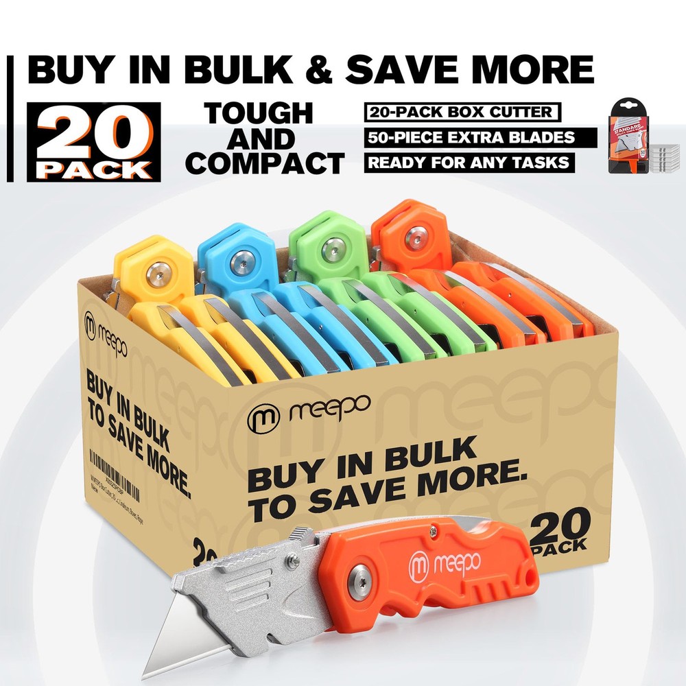 An Essential Tough Tools - Our utility knife are all made for professionals, which can do much more than cutting boxes or packing tapes. Best performing blades means that you don’t need to keep lots blades to change. Heat treated steel blades keeps the sharpness for a long time. As an essential tough hand tools, Our utility knife are ready for every purpose Tough Tools that You can Trust - What's great about our utility knife? The ergonomic handle will help assure you that it won't fly out of your hands. Easy blade change design means that you can change the blade more easier than normal box cutter, which needs a screwdriver to change out the blade. Different from normal bulky utility knives, the handle of our utility knives are all made of tough plastic. The lightweight feeling will makes you more comfortable when works in daily life Born for The Way You Work - As a heavy duty fixed blade utility knife, the blade of our utility knife can be much more strength than normal retractable box cutter. With our utility knife, cutting works can be easy and fun Set of 20 Utility Knife - Comes with 20-piece utility knife bulk ( 4 colors, 5 piece of box cutters per each color)and extra 50-pack utility knife blades per box provide a long-lasting supply for all your cutting needs Ready for Heavy Duty Purpose - Our utility knife are widely used by professional builders, DIYers, electricians and carpentry . It can easily cut though heavier materials like drywall, roofing shingles, flooring, sheet plastic, boxes, rope, wallpaper and more