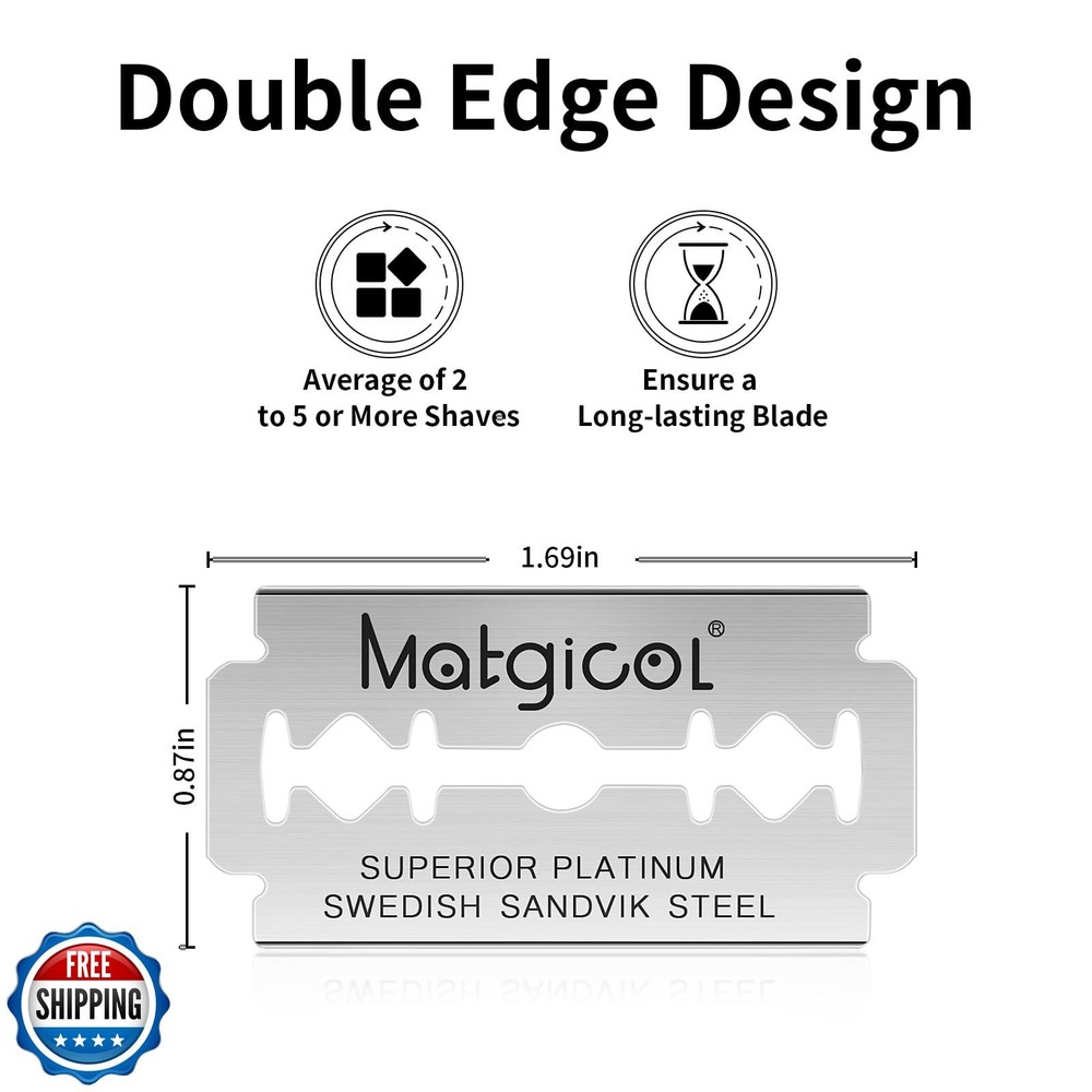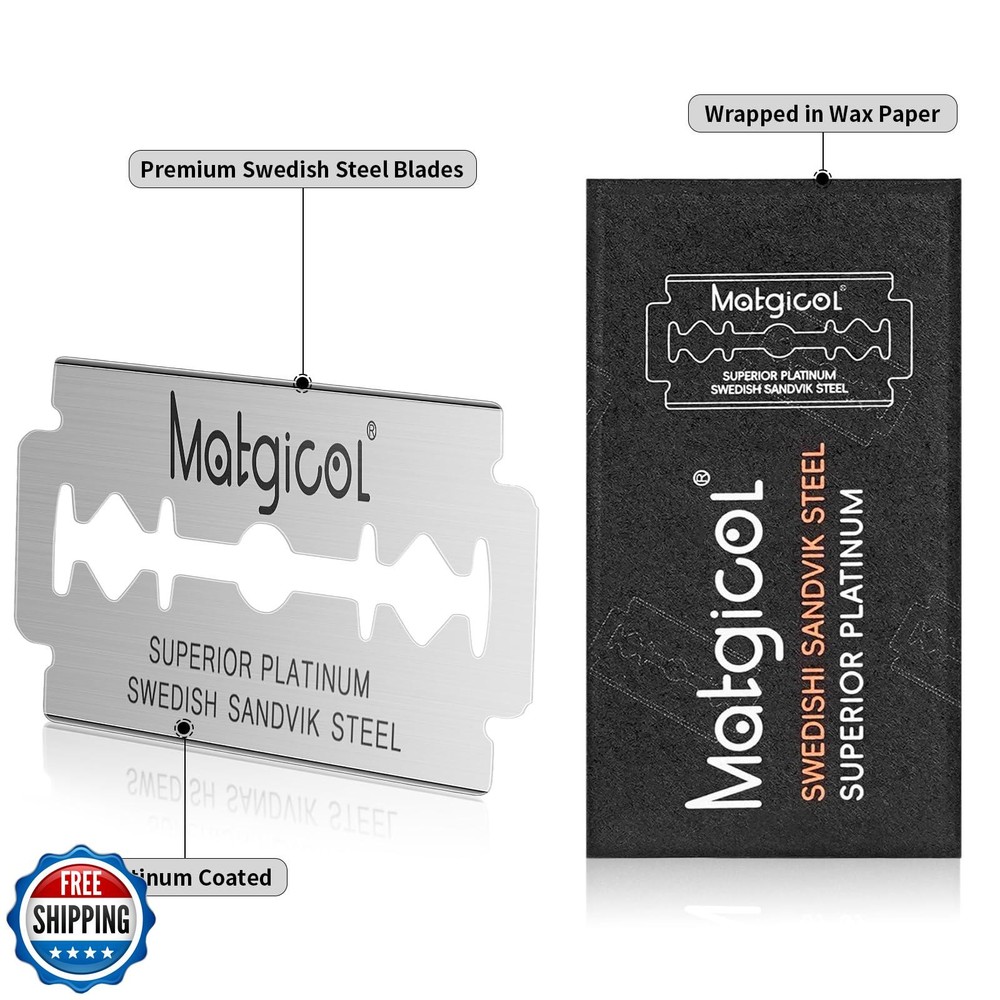 Double Edge Safety Razor Blades - 20 Count Premium Platinum Swedish Steel Blades for Men and Women’s Razors – Precision Shaving Blades for Smooth, Comfortable and Close Shaves Features PREMIUM SWEDISH STEEL CONSTRUCTION:Crafted from high-quality Swedish steel with a platinum coating for durability and precision. These blades provide a clean, smooth shave for both men and women. UNIVERSAL DOUBLE EDGE DESIGN:Fits all standard double-edge safety razors, making it easy to upgrade your shaving experience without switching your current razor EFFORTLESS SMOOTH SHAVES:Enjoy the perfect balance of sharpness and comfort, ensuring a close shave without skin irritation, nicks, or cuts IDEAL FOR SENSITIVE SKIN:Designed to glide smoothly, reducing tugging and pulling, these blades are perfect for all skin types, including sensitive skin VALUE PACK FOR LONG-LASTING USE:Includes 20 individually wrapped blades to keep them fresh, safe, and hygienic, ensuring you always have a sharp blade on hand Shipping Free & Fast Shipping: We offer free shipping to most of the USA with a normal delivery time of 3-7 days. However, due to the current situation, additional delivery time (up to 3 weeks) may be required for some items. Alternative Carriers: We may use alternative carriers (e.g., USPS, FedEx, UPS) to ensure your package arrives safely and on time. Due to the use of multiple carriers, we are unable to provide a tracking number automatically. Handling Time: Orders are processed and shipped within 1-2 business days of receiving cleared payment. Shipping Restrictions: Shipping to Alaska, Hawaii, Puerto Rico, Guam, and other US territories may incur shipping charges or delivery restrictions. Please contact us before ordering, or your order can be refunded/cancelled. State Restrictions: Certain items may not be shipped to California due to state regulations. Contact for Tracking Updates: If you require tracking updates or have any concerns about the delivery of your order, please feel free to contact us, and we will be happy to assist you. Return Policy 30-Day Hassle-Free Returns: If you are not completely satisfied with your purchase, you can return the item for free within 30 days of receiving it for a full refund or exchange. Easy Return Process: Contact us, and we will provide you with a prepaid return shipping label and detailed instructions. No Restocking Fee: There are no restocking fees for returns. However, the buyer is responsible for return shipping costs if the return is not due to a seller"s error. Refund Processing: Refunds will be processed within 1 business day of receiving the returned item in its original condition. Feedback Your feedback is extremely important to us. We strive to provide the best products and customer service possible. If you are satisfied with your purchase, please take a moment to leave us a positive review. If you have any concerns or issues with your order, please contact us before leaving negative feedback. We are committed to resolving any problems and ensuring your satisfaction. Contact Us If you have any questions or concerns, please feel free to reach out to our customer support team. You can contact us through the eBay messaging system. We are available Monday to Friday, 9:00 am to 5:00 pm EST, and we will do our best to respond to your inquiry within 24 hours. Thank you for supporting our small family business!