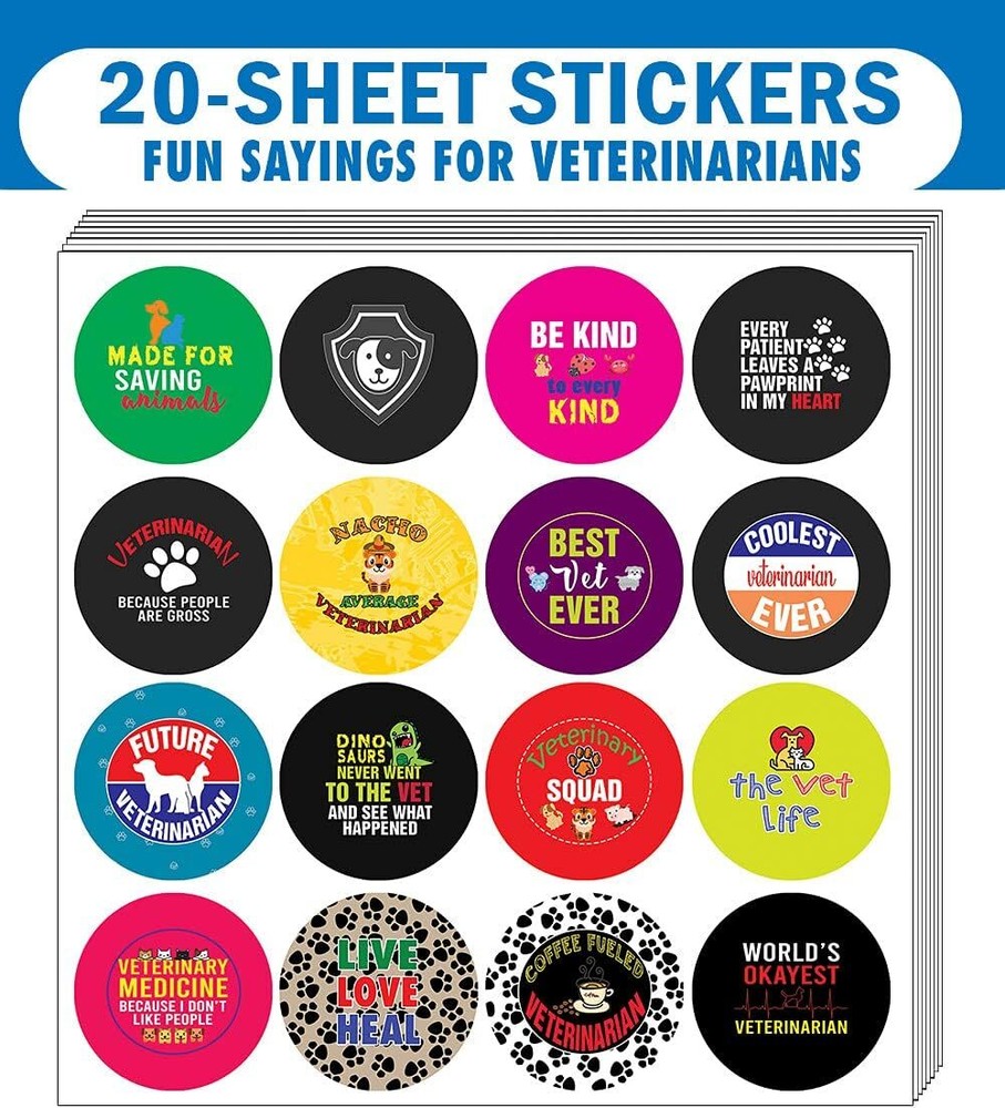 16 UNIQUE DESIGNS INSPIRING STICKERS FOR YOUR DIY PERSONALIZED DECORATIONS - I am a Veterinarian Stickers (20-Sheets x 16 Designs). These colorful and uniquely inspiring round shaped stickers are the best tool for DIY decoration and personalization of your belongings. GREAT STOCKING STUFFERS, TEACHING SUPPLEMENTARY MATERIALS, AND GIVEAWAY - Great stocking stuffers gifts for Vets, Dog Doctors, Professionals Men & Women. A perfect design to give during guidance sessions, classroom activities, school giveaways, birthdays, anniversaries, family day, and any other special occasions. MADE WITH DURABLE AND WATERPROOF MATERIALS - There is a lamination or coating to make the stickers high water resistant, and WILL NOT fade from the water. The stickers can stick it anywhere you like, and it sticks there and lasts a long time. A COLORFUL AND DECOR STICKER DECAL - Each sheet with 16 individual round stickers. There are 20 Sheets, with a total of 320 pieces of stickers. STICKER SIZE: 1.5 INCHES IN DIAMETER I am a Veterinarian Stickers (20 Sets X 16 Designs) COLORFUL AND COLLECTION OF TEXT STICKERS • Well designed. • Very encouraging. • Self-adhesive. I am a Veterinarian Stickers (20 Sets X 16 Designs) are super fun to collect; you can't have just one! That's why you will find a selection of stickers right here. Each package comes with different stickers in a variety of designs. Stick them here, stick them there, stick them everywhere! Everyone will love these self-adhesive stickers. These colorful stickers are perfect for any adults and these come with very inspiring messages and bright pictures. A fun, inexpensive way to add a decorative, notes, and stationery. Delight yourself with uplifting messages designs that are very encouraging. I am a Veterinarian Stickers (20 Sets X 16 Designs) perfect for giveaways, behavior incentives, prizes! These stickers are acid-free, nontoxic, and safe for use on photos. This product comes with a 60 days money back guarantee. You can return them to us for a full refund.