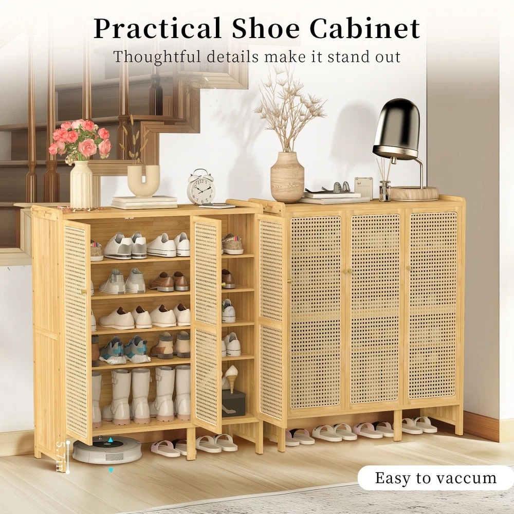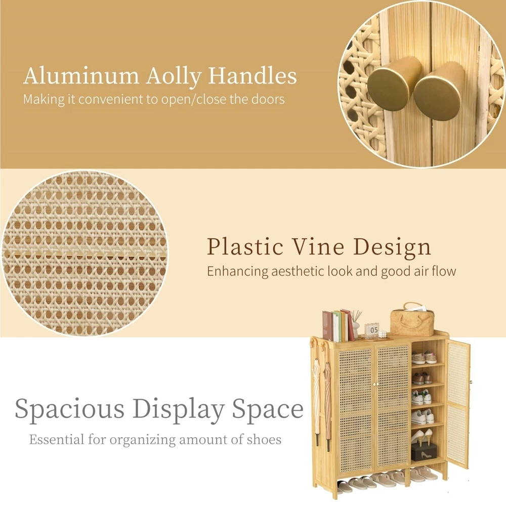 6-Tier Bamboo Shoe Cabinet with 3 Hollow Doors for Entryway Storage