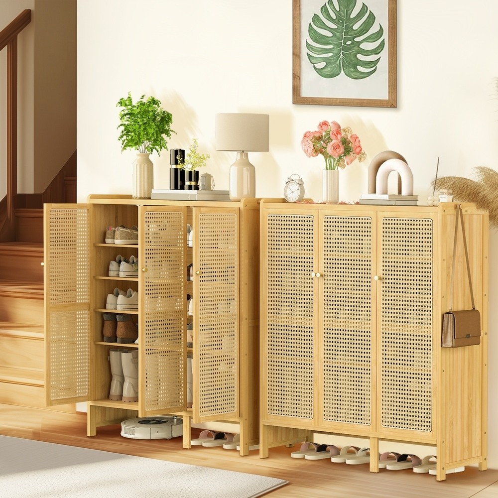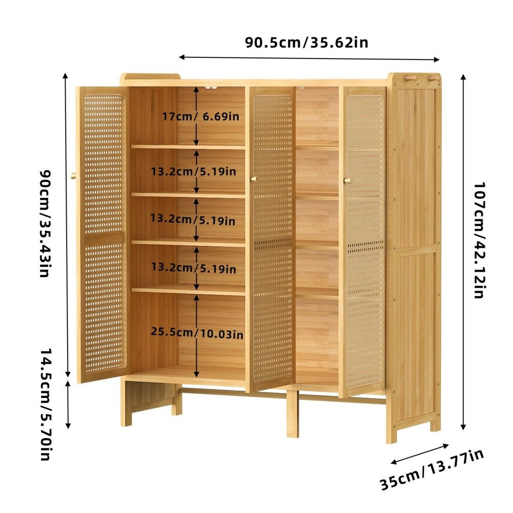 20 Pairs Bamboo Shoe Cabinet Storage Entryway Hallway Living Room w/ Hollow Door 20 Pairs Bamboo Shoe Cabinet Storage Entryway Hallway Living Room w/ Hollow Door US SELLER, FAST ARRIVAL! Features: Built with 5-tier ample interior shelves for accommodating up to 18-20 pairs of shoes. Includes a top surface for displaying planters, framed photos, keys, artwork, a mirror. All three doors have gaps in the rattan, vented to air circulation inside the cabinet. Breathable plastic rattan panel doors, not only add texture also promote ventilation. Rattan-wrapping edge, not only enhance beauty also prevent net from coming loose. The doors are fitted with magnetic closure, reduce the risk of doors being damaged. Magnetic closure easy to open and close, keeping shoes safely hidden , reduces wear. Comes an elegantly integrated aluminum door knob adds a refined finishing touch. Built with four hooks for hanging everyday essentials like handbags, umbrellas, hats. Constructed from bamboo frame with MDF shelves, lends super strength and robust. Natural bamboo structure, without any pungent smell, safe for the health of family. Strong package includes all the hardware and instruction for hassle-free assembling. Specifications: Shape: Rectangular Model: Shoes Cupboard Features: Well-ventilated Doors, With Shelves Materials: 70% Bamboo +20% MDF +1% Iron +9% ABS Color: Natural Wood Net Weight: 16.5kg/ 36.38 lbs Product Dimension: L * W * H total 90.5x35x107cm/ 35.62x13.77x42.12 inch Tabletop Surface: L * W 90.5x35cm/ 35.62x13.77 inch Weight Capacity: Top Shelf 10kg/ 22.05 lbs Each Shelf 5kg/ 11.02 lbs Package Included: 1 x Shoe Storage Cabinet 1 x Instruction Guide Payment Delivery details Terms of sales About us Contact us Payment 1.We accept payment by credit card, paypal, payoneer. 2.Upon on payment, please confirm your shipping address. Delivery details 1. All of our products are brand new. 2. All Mirror have passed drop test over 1.2m and quality inspection, ensures the mirror was shipped in good condition before shipment. Terms of sales 1.We are located in NJ, CA ,all the items will be shipped via USPS, UPS Ground, Fedex Ground with tracking number provided. 2. We cannot ship to Alaska, Hawaii & Puerto Rico Addresses. About us About Wisfor At Wisfor,we provide high quality LED bathroom mirrors,focus on the development and innovation of mirrorsand our company has over 10 years backed with professional service experience, and exports products to more than 130 countries around the world. There are severial series of mirrors, Bathroom Mirror with Light, RGB Frontlit &Backlit LED Mirror, Metal Frame Mirror,Decorative Wall Mirror,ect. And many shapes, rectangle, round, oval, and so on.We always focus on the development and innovation of high-quality LED bathroom vanity mirror, to meet your demand and to elevate personality and design tastes. Contact us 1. If you are satisfied with the transaction could you pls leave us a positive feedback 5-star that we will be appreciated. 2. Normally your email would get replied within 24 hours (Business Hours) and your issue will be followed up carefully till we 've reached an agreement. 3. If you have any questions or suggestions before opening a case or dispute ,or leaving any neutral or negative feedback, please contact us first,we will try our best to resolve your problem. Brand UNHO Model Shoes rack Features With Doors, With Shelves Item Height 42.12 inch Item Length 35.62 inch Item Width 13.77 inch Type Shoe Cabinet Mounting Free Standing Assembly Required Yes MPN JCSKB9WK2BA Material Bamboo Number of Shelves 5 Item Depth 35.62 inch Item Weight 16.5kg Color Natural Wood Capacity 16-20 pairs Number of Items in Set One-Piece