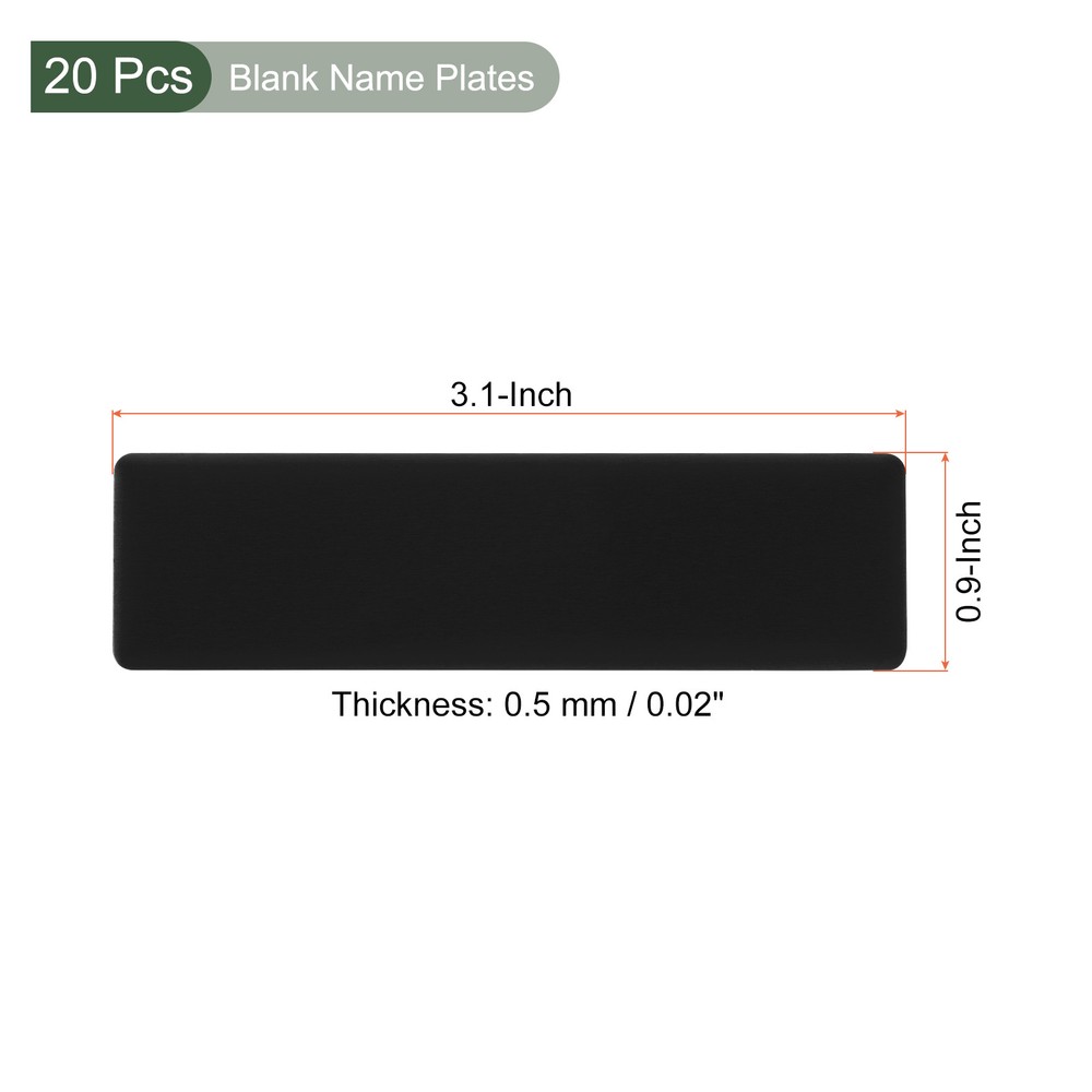 Document MULTIPURPOSE - You can print anything you want to print on the blank nameplate, including text, patterns, you can fully show your creativity, can be used as door numbers, wall panels, business plaques, table plates, serial number labels, etc.WHAT YOU GET - The package comes with 20pcs Blank Name Plates which measures 8 x 2.2 cm / 3.1 x 0.9 inch (L*W), Thickness: 0.5 mm / 0.02 inch.RELIABLE MATERIAL -Made of Anodized Aluminium, wear-resistant and resistant to high temperatures, not easy to deform, can be used for a long time.SPECIAL DESIGNED - The rounded corner design doesn't scratch your fingers easily, and its blank surface allows you to use your imagination and creativity to create your own nameplate for your custom DIY needs.KINDLY NOTE - Please check the size before ordering. 20Pcs Blank Name Plates, Anodized Aluminium Laser Engraved(Black, 3 x 1 Inch) MULTIPURPOSE - You can print anything you want to print on the blank nameplate, including text, patterns, you can fully show your creativity, can be used as door numbers, wall panels, business plaques, table plates, serial number labels, etc. WHAT YOU GET - The package comes with 20pcs Blank Name Plates which measures 8 x 2.2 cm / 3.1 x 0.9 inch (L*W), Thickness: 0.5 mm / 0.02 inch. RELIABLE MATERIAL - Made of Anodized Aluminium, wear-resistant and resistant to high temperatures, not easy to deform, can be used for a long time. SPECIAL DESIGNED - The rounded corner design doesn't scratch your fingers easily, and its blank surface allows you to use your imagination and creativity to create your own nameplate for your custom DIY needs. KINDLY NOTE - Please check the size before ordering. Hot Item Payment 1.We accept eBay payment . 2.Payment must be received within 7 business days of auction closing. Shipping 1.We ship to your eBay or Paypal address. Please make sure your eBay and Paypal address is correct before you pay. 2.Items will be shipped within 1-3 business day when we received payment. 3.Delivery time depends on destination and other factors. Description Policy 20Pcs Blank Name Plates, Anodized Aluminium Laser Engraved(Black, 3 x 1 Inch) MULTIPURPOSE - You can print anything you want to print on the blank nameplate, including text, patterns, you can fully show your creativity, can be used as door numbers, wall panels, business plaques, table plates, serial number labels, etc. WHAT YOU GET - The package comes with 20pcs Blank Name Plates which measures 8 x 2.2 cm / 3.1 x 0.9 inch (L*W), Thickness: 0.5 mm / 0.02 inch. RELIABLE MATERIAL - Made of Anodized Aluminium, wear-resistant and resistant to high temperatures, not easy to deform, can be used for a long time. SPECIAL DESIGNED - The rounded corner design doesn't scratch your fingers easily, and its blank surface allows you to use your imagination and creativity to create your own nameplate for your custom DIY needs. KINDLY NOTE - Please check the size before ordering. Hot Item Payment 1.We accept eBay payment . 2.Payment must be received within 7 business days of auction closing. Shipping 1.We ship to your eBay or Paypal address. Please make sure your eBay and Paypal address is correct before you pay. 2.Items will be shipped within 1-3 business day when we received payment. 3.Delivery time depends on destination and other factors.