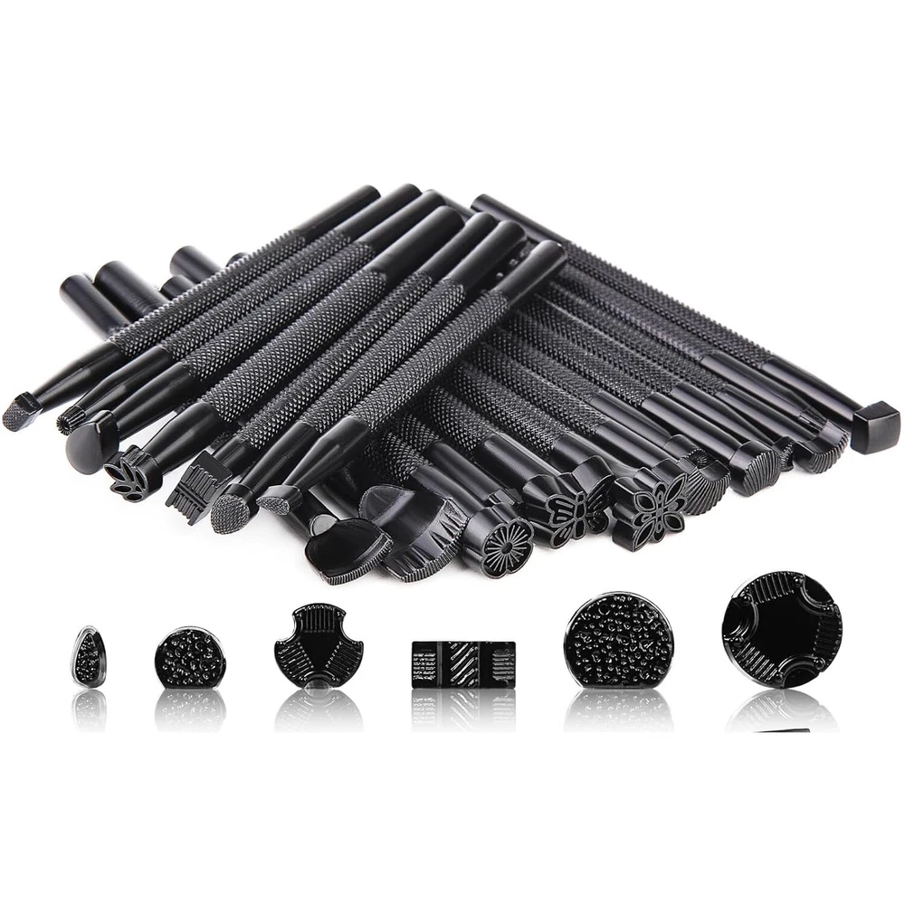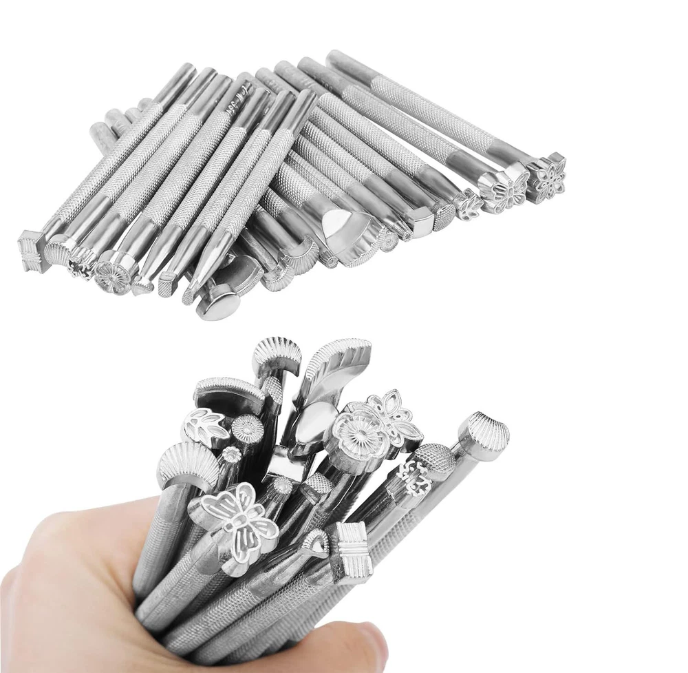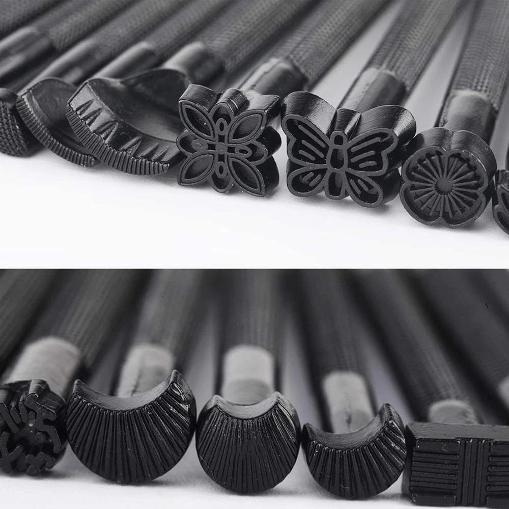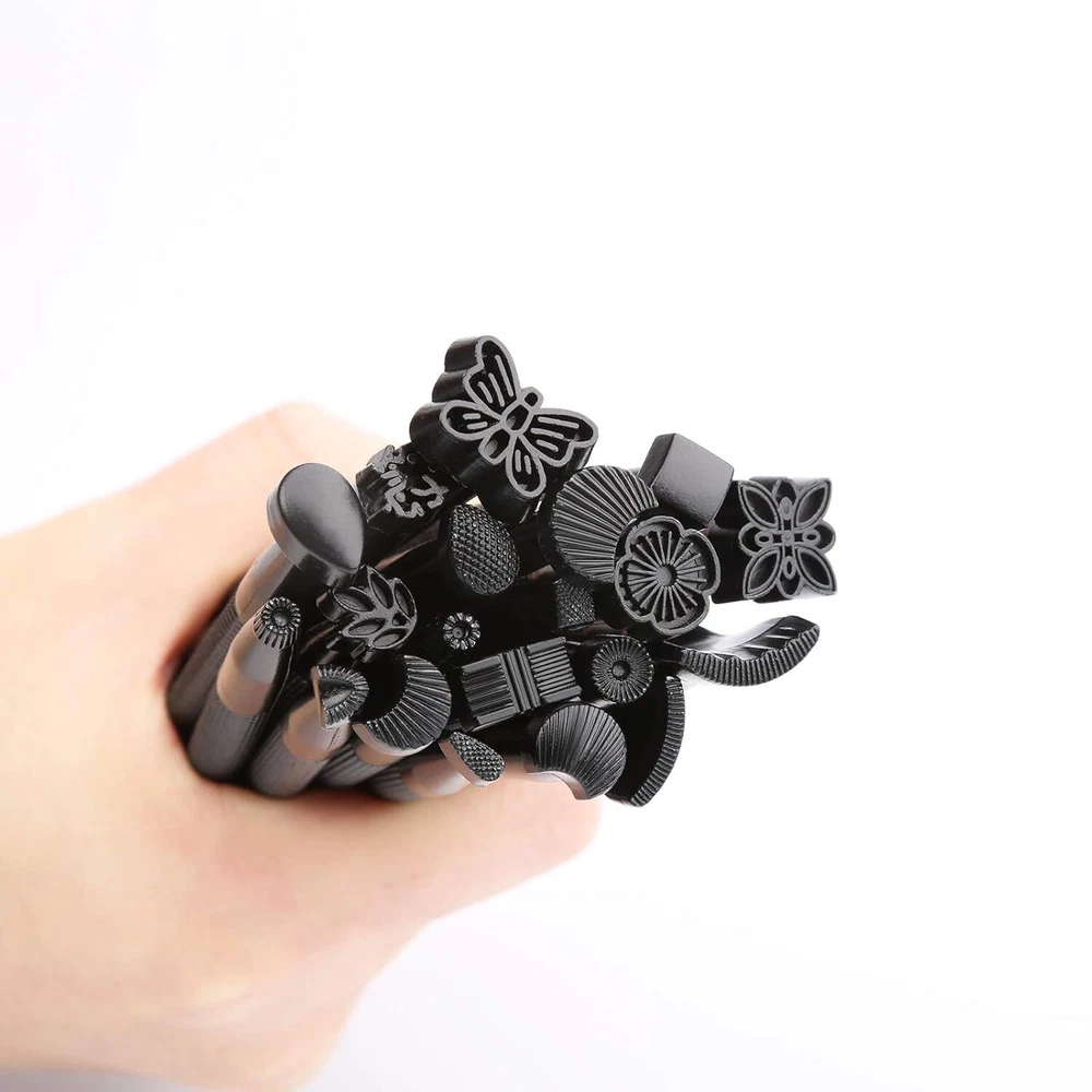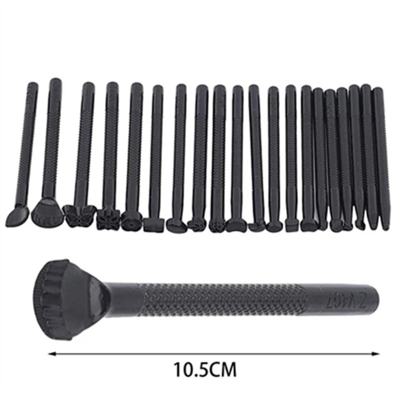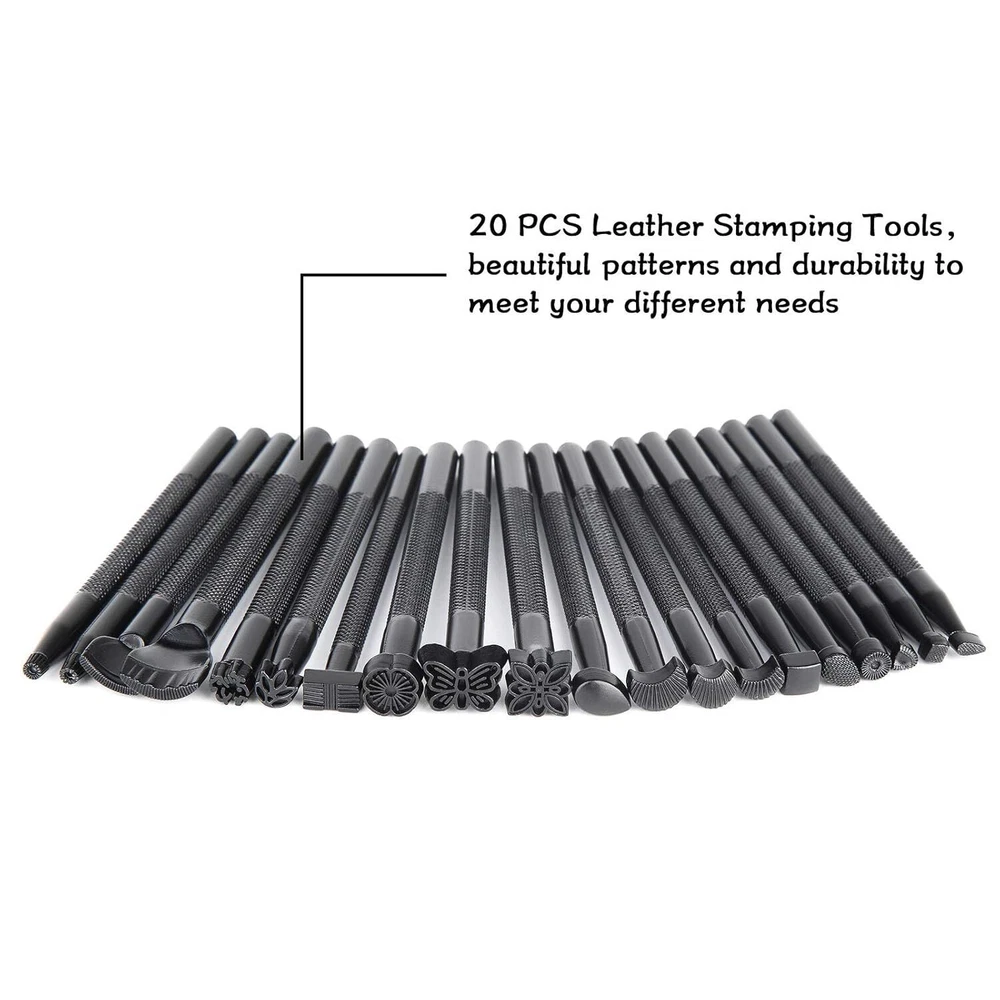 Specification: Leather Working Stamping Tools Kit: Our leather tools kit includes 26 pcs black high-quality leather craft stamps tools, great craving tools set is suitable for beginner and professional craft person. Good Quality Carving Stamps Kit: High quality s tainless steel metal material, effective to prevent rust, no burr, smooth surface. Durable and high quality stamps tools apply to leather craft or DIY that you need. 20 Pcs Leather Tooling Stamps Set: 20 pcs general stamping tools with clear texture, black appearance, beautiful patterns and durability to meet your different needs. The handle has a non-slip texture and an elegant appearance. Accurate Leather Stam p: Each tool has a specification mark, can smooth when hitting vertically, and the bottom is flat to prevent the object from being deflected during printing, and the printing is accurate. Leather Carving Tools Function: Professional leather stamping tools kit for leather craft working to print patterns on the leather that you like, make your wallet, belt or bag more personalized and unique. Package Included: 20pcs/set Leather stamps kit ( abo u t 500 g ,High Quality)