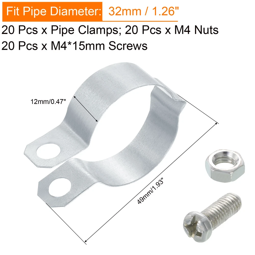 Document Description:Made of premium zinc-plated steel material for durability and stability, rust and corrosion resistant, ensuring long-term use, suitable for indoor and outdoor.With thicker metal and stable structure, durable to use and not easy to deform, can better tighten various pipes and be used on the ceiling or wall, and it is not easy to fall off after installation.Easy to install and convenient to use, package comes with mounting screws and nuts. Please according to the outer diameter of the pipe choose the correct size pipe clamp.Suitable for gas pipes, drain pipes, off-wall laying pipes, rod fixation and other tubes, hose, water supply pipes and wire applications, fit for wind industry, home construction, electric power field and more.Specification:Material: Zinc Plated SteelTotal Size: 49mmx12mm/1.93"x0.47"(L*W)Fit Pipe Diameter: 32mm / 1.26"Thickness: 0.6mmPackage Content:20Pcs x Pipe Clamps; 20Pcs x M4 Nuts; 20Pcs x M4*15mm Screws 20Pcs Pipe Clamps Rigid Bracket Pipe Strap Clamp Pipe Support Fit 1-1/4" Pipe Description: Made of premium zinc-plated steel material for durability and stability, rust and corrosion resistant, ensuring long-term use, suitable for indoor and outdoor. With thicker metal and stable structure, durable to use and not easy to deform, can better tighten various pipes and be used on the ceiling or wall, and it is not easy to fall off after installation. Easy to install and convenient to use, package comes with mounting screws and nuts. Please according to the outer diameter of the pipe choose the correct size pipe clamp. Suitable for gas pipes, drain pipes, off-wall laying pipes, rod fixation and other tubes, hose, water supply pipes and wire applications, fit for wind industry, home construction, electric power field and more. Specification: Material: Zinc Plated Steel Total Size: 49mmx12mm/1.93"x0.47"(L*W) Fit Pipe Diameter: 32mm / 1.26" Thickness: 0.6mm Package Content: 20Pcs x Pipe Clamps; 20Pcs x M4 Nuts; 20Pcs x M4*15mm Screws Hot Item Payment 1.We accept eBay payment . 2.Payment must be received within 7 business days of auction closing. Shipping 1.We ship to your eBay or Paypal address. Please make sure your eBay and Paypal address is correct before you pay. 2.Items will be shipped within 1-3 business day when we received payment. 3.Delivery time depends on destination and other factors. Description Policy 20Pcs Pipe Clamps Rigid Bracket Pipe Strap Clamp Pipe Support Fit 1-1/4" Pipe Description: Made of premium zinc-plated steel material for durability and stability, rust and corrosion resistant, ensuring long-term use, suitable for indoor and outdoor. With thicker metal and stable structure, durable to use and not easy to deform, can better tighten various pipes and be used on the ceiling or wall, and it is not easy to fall off after installation. Easy to install and convenient to use, package comes with mounting screws and nuts. Please according to the outer diameter of the pipe choose the correct size pipe clamp. Suitable for gas pipes, drain pipes, off-wall laying pipes, rod fixation and other tubes, hose, water supply pipes and wire applications, fit for wind industry, home construction, electric power field and more. Specification: Material: Zinc Plated Steel Total Size: 49mmx12mm/1.93"x0.47"(L*W) Fit Pipe Diameter: 32mm / 1.26" Thickness: 0.6mm Package Content: 20Pcs x Pipe Clamps; 20Pcs x M4 Nuts; 20Pcs x M4*15mm Screws Hot Item Payment 1.We accept eBay payment . 2.Payment must be received within 7 business days of auction closing. Shipping 1.We ship to your eBay or Paypal address. Please make sure your eBay and Paypal address is correct before you pay. 2.Items will be shipped within 1-3 business day when we received payment. 3.Delivery time depends on destination and other factors.
