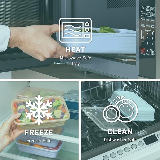 About this item Everyone’s Favorite Meal Prep Pack: Bentgo is America’s go-to brand for maintaining healthy habits! Pack nutritious meals for the entire week with this practical 20-piece set that comes with ten 1-compartment trays and ten custom-fit lids that help seal in freshness, so you can enjoy breakfasts, lunches, dinners, and even leftovers on the go. Portion Controlled Design: No need to measure your portions—volume is already embossed on the tray to help you with your healthy eating goals, diet, or weight loss plans. The custom-fit lids keep food fresh all day long and stack together neatly to save you space in your pantry. Plus, all the lids are clear, so you can easily identify what food is inside at a glance. Easy to Heat & Clean: Safely heat up your food straight from the freezer or refrigerator for warm, delicious meals and leftovers. Each meal prep container is both microwave and top-shelf dishwasher safe. Note: do not microwave lids, only the trays are microwavable. For best results, hand wash to extend the life of the product. Durable & Reusable: Made of tough, but safe, BPA-free materials, Bentgo Prep containers are designed to last meal after meal, so you can ditch single-use plastics with these eco-friendly containers. They are lightweight, portable, and easy to carry to the gym, office, dorm, soccer field, and more. What You Get: 10 one-compartment trays, 10 custom-fit lids, electronic meal prep book, and caring customer support.