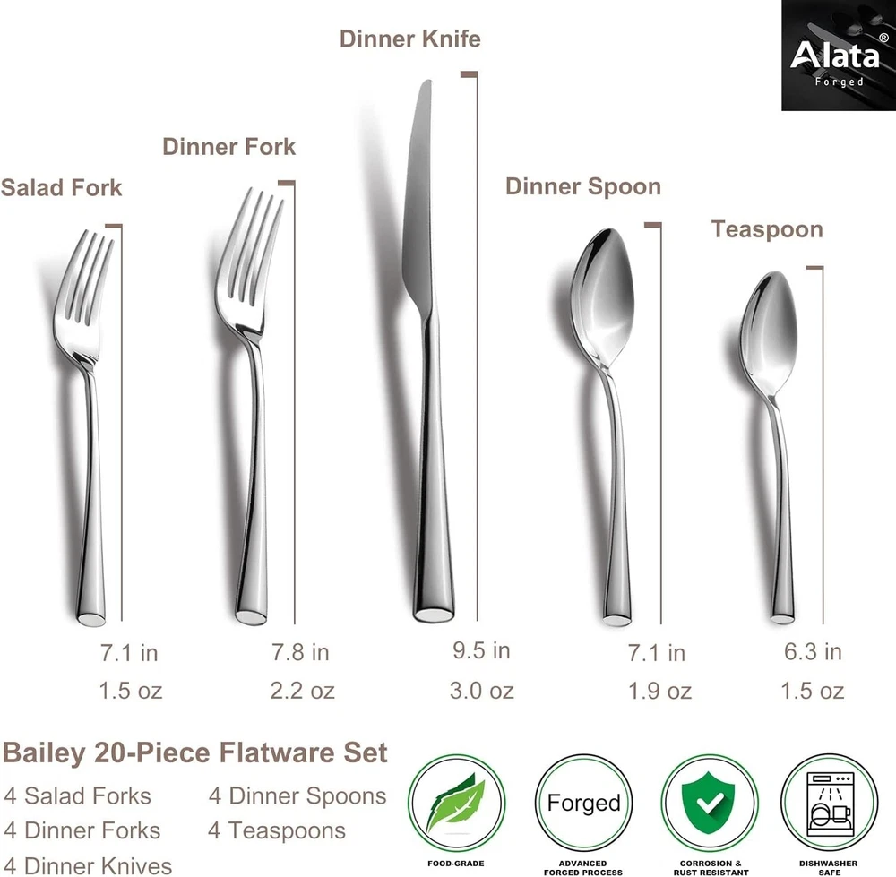 20-Piece Forged Silverware Set with Unique Handle - Ideal for Everyday Use ‹ › ‹ › ‹ › ‹ › ‹ › ‹ › ‹ › ‹ › ‹ › 20-Piece Forged Silverware Set with Unique Handle Elevate your dining experience with our exquisite 20-piece flatware set, thoughtfully designed for everyday use and special occasions alike. Set Includes: 4 Dinner Knives 4 Dinner Forks 4 Dinner Spoons 4 Salad Forks 4 Teaspoons Service for 4, perfect for family meals or entertaining guests Fabrication: Crafted from high-performance 18/0 stainless steel, ensuring strength and durability. Advanced hot forged process enhances corrosion resistance, promising longevity. Design and Appearance: Unique gradual oblate handle provides a distinctive look, ensuring style without the worry of mismatched decor. Experience elegance while enjoying everyday meals. Application Occasion: Ideal for family daily use, parties, gatherings, and formal dinners. Perfect for candlelight dinners, banquets, camping trips, Thanksgiving celebrations, BBQs, weddings, and other special events. Care Instructions: Dishwasher safe for easy cleanup. No polishing required—spend more time enjoying your meals! For best care, hand wash recommended and dry before storing. Avoid steel wire brushes, hard sponges, and abrasive cleaning tools to maintain pristine condition. Why Choose Our Silverware Set? Transform your dining table with our stunning 20-Piece Forged Silverware Set. With a unique design and robust construction, this set is made to impress and endure. Enjoy moments of joy with family and friends, enhanced by elegant dining accessories that reflect both style and functionality. Your table deserves this upgrade—experience the difference today! Shipping Free & Fast Shipping - We offer free shipping to most of the USA with a normal delivery time of 3-7 days. However, due to the current situation, additional delivery time (up to 3 weeks) may be required for some items. Alternative Carriers - We may use alternative carriers (e.g. USPS, FedEx, UPS, etc.) to ensure your package arrives safely and on time. Due to the use of multiple carriers, we are unable to provide a tracking number automatically. Handling Time - Orders are processed and shipped within 1-2 business days of receiving cleared payment. Shipping Restrictions - Shipping to Alaska, Hawaii, Puerto Rico, Guam, and other US territories may incur shipping charges or delivery restrictions. Please contact us before ordering, or your order can be refunded/cancelled. State Restrictions - There may be restrictions based on your state of purchase. For example, certain items may not be shipped to California due to state regulations. Contact for Tracking Updates - If you require tracking updates or have any concerns about the delivery of your order, please feel free to contact us, and we will be happy to assist you. Return 30-Day Hassle-Free Returns - We want you to be completely satisfied with your purchase. If you are not, you can return the item within 30 days of receiving it for a full refund or exchange. Easy Return Process - To start a return, simply contact us and we will provide you with a prepaid return shipping label and detailed instructions. Restocking Fee - There are no restocking fees for returns. However, the buyer is responsible for return shipping costs if the return is not due to a seller's error. Refund Processing Time - Refunds will be processed within 5 business days of receiving the returned item in its original condition. Payment We accept all major credit cards, PayPal, and Apple Pay for your convenience. Your payment information is secure and encrypted to ensure a safe and seamless transaction. Please complete your payment within 3 days of purchase to avoid any delays in shipping. Feedback Your feedback is extremely important to us. We strive to provide the best products and customer service possible. If you are satisfied with your purchase, please take a moment to leave us a positive review. If you have any concerns or issues with your order, please contact us before leaving negative feedback. We are committed to resolving any problems and ensuring your satisfaction. Contact Us If you have any questions or concerns, please feel free to reach out to our customer support team. You can contact us through the eBay messaging system. We are available Monday to Friday, 9:00 am to 5:00 pm EST, and we will do our best to respond to your inquiry within 24 hours. Buy it now and enjoy a pleasant shopping experience! UPC: Not Set Unit Quantity: 2.71 Material: Stainless Steel Department: Adults Set Includes: Set,Dinner Knife,Dinner Fork,Dinner Spoon,Salad Fork,Teaspoon Character: Not Set Features: Dishwasher Safe Type: Set Brand: Unbranded Number of Items in Set: 20 Service For: 4 Color: Bailey Silver Handle Material: Stainless Steel Country/Region of Manufacture: Not Set MPN: Not Set Finish: Polished Style: Modern Handle Pattern: Not Set Occasion: Wedding Character Family: Not Set Wood Tone: Not Set Item Weight: 2.71 pounds Manufacturer Warranty: Not Set Model: Not Set Unit Type: lb Care Instructions: Dishwasher Safe Personalize: Not Set
