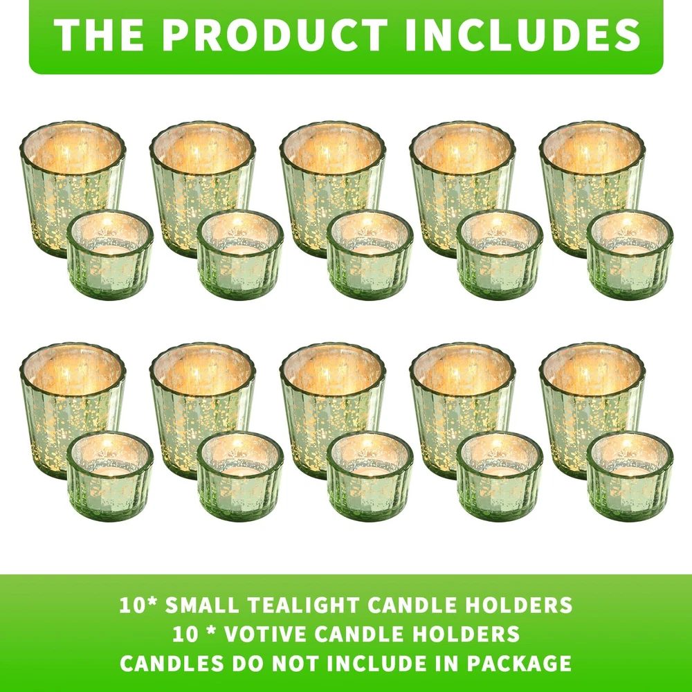 Green Votive Candle Holders Set of 20, Wedding Centerpiece Table Decorations,Glass Candle Holders for Home Decor,Tea Light Candle Holder for Table Centerpiece Thanksgiving Christmas Decor (20, Green) Size Specification: Green candle holder set is composed of two different size candle holders: 2.17'w x 2.36'h | 2.17'w x 1.57'h. The combination candle holder set is perfect for most of the votive candles, tealight candles and flamless candles GREEN VOTIVE CANDLE HOLDERS For Fall Decorating: Green votive candle holders are perfect for fall weddings, home decor, dinner parties, holidays( Diwali, Thanksgiving, Christmas ), and special occasions, add a glamorous glow and old-time elegant look to any table setting Tea light candle holder: Mercury speckled effect on the tealight holder will enhance the natural warm light of candles, giving it a vintage but timeless look. Use these pretty green mercury glass votives as part of your overall decor, or as a favour for your guests HIGH-QUALITY & SAFE MATERIALS: These candle holders bulk are made of thickened glass and high-temperature resistant materials to ensure safe use when the candles are burning. The widened and thickened base effectively keeps the entire stand stable WARM TIPS: Glass products are fragile during transportation. If the candlestick holders you received is damaged in any way, don't worry. We are service team is always here to help GREEN VOTIVE CANDLE HOLDERS For Fall Decorating: green votive candle holders are perfect for fall weddings, home decor, dinner parties, holidays( Diwali, Thanksgiving, Christmas ), and special occasions, add a glamorous glow and old-time elegant look to any table setting Shipping We offer FREE shipping on all orders! We ship within Three business days of payment, usually sooner. We use a selection of shipping services such as UPS, FedEx, USPS etc. We only ship to the lower 48 states, no APO/FPO addresses or PO Boxes allowed. Local pickups and combined shipping options are not provided at this time. International buyers – please note: Import duties, taxes, and charges aren't included in the item price or postage cost. These charges are the buyer's responsibility. Please check with your country's customs office to determine what these additional costs will be prior to bidding or buying. Order Cancellation Policy * Order Cancellation Policy ** You can return a product for up to 30 days from the date you purchased it. 1. The seller reserves the right to cancel the special case only due to eBay cancellation fee. 2. The decision of seller is the final. 3. The seller will respond to the cancellation request within 2 business days. Please wait for the result of cancellation. 4. In case the cancellation is not completed by some reasons, the buyer can follow the options below to get the refund. 4.1 The buyer can reject the item when it arrives. 4.2 The buyer can send the item back to the seller within 30 days If the buyer receives item (USA Shipment ONLY). The seller will provide the FREE return label to the buyer when the buyer opens " Return Item" case on eBay by using the reason as "Change my mind" ONLY. 5. When buyer has placed the order. The order will be processed and completed by automatic warehouse system within 5 minutes. In case that buyer sends the cancellation request after 5 minutes of placing the order, the request will be rejected. **Sending direct message to cancel the order is not allowed for every case.* Return Policy - If buyer would like to return the items for refund or replacement, please CONTACT SELLER to receive the free return label from seller. The refund or replacement will be processed with the tracking number of return label which is provided by seller only. The other ways of return which are not approved by seller will not be processed for the refund or replacement. Return You can return a product for up to 30 days from the date you purchased it. Any product you return must be in the same condition you received it and in the original packaging. Please keep the receipt. Payment We accept payment by any of the following methods: eBay Payments Please pay as soon as possible after winning an auction, as that will allow us to post your item to you sooner! Feedback Customer satisfaction is very important to us. If you have any problem with your order, please contact us and we will do our best to make you satisfied. Contact Us If you have any queries, please contact us via ebay. We usually respond within 24 hours on weekdays. Please visit our eBay store to check out other items for sale! Thank you for shopping at our store.