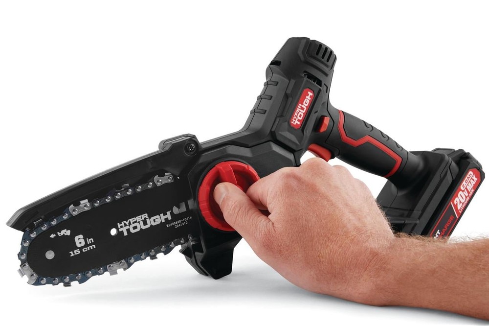 20V 6" Pruner Saw is the ideal saw for easily trimming limbs and branches around the yard. Its lightweight and compact design reduces fatigue, allows for easy transportation and storage and gives users increased control and maneuverability in tight access areas. The tool-free chain tensioning provides for easy adjustments to the bar and chain, conveniently storing the combination wrench in the tool storage area. The 20V 6-inch Pruner Saw's rear comfort grip provides enhanced user comfort during extended periods of use. The included 20V Max 2.0 Ah lithium-ion battery and a 20V Max battery charger are compatible with all 20V Max tools. When you are ready to make repairs or tackle home-improvement projects, the, Pruner Saw is your "go-to" outdoor appliance. 6-inch Blade Length for Light Pruning and Limbing Anti-Kickback Safety Cover Soft-Grip Handle Lightweight and compact design is perfect for precise trimming of limbs and branches Chain Speed: 4.9 M/S No-Load Speed: 16000 RPM Chain Pitch: 3/8" Chain Gauge: 0.043" 20V Max 2.0 Ah Lithium-ion Battery and a 20V Max Battery Charger Included