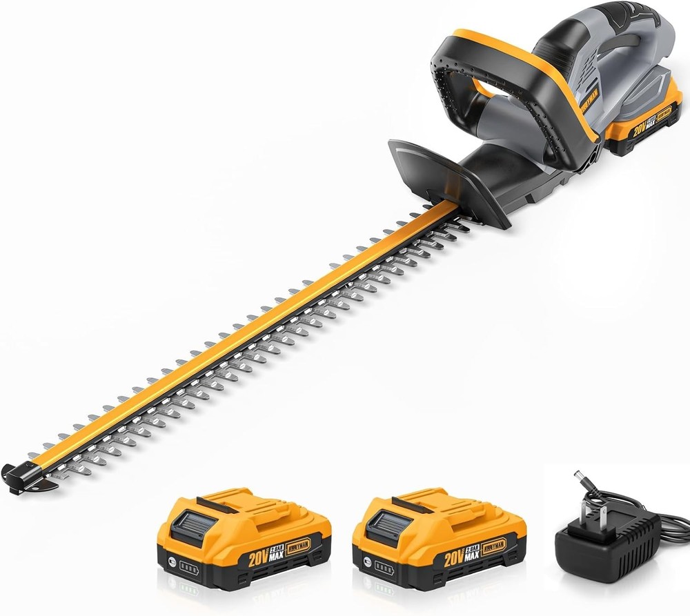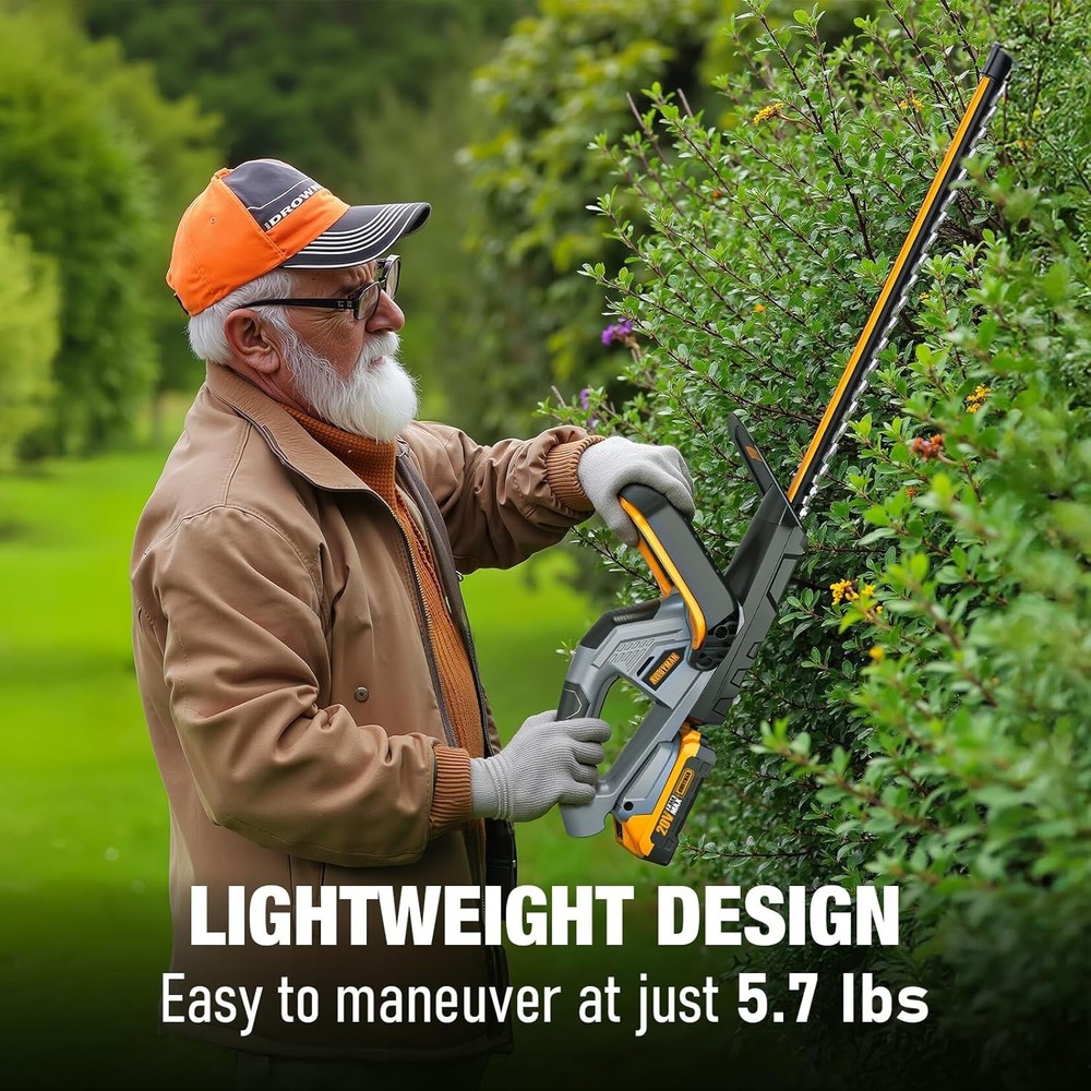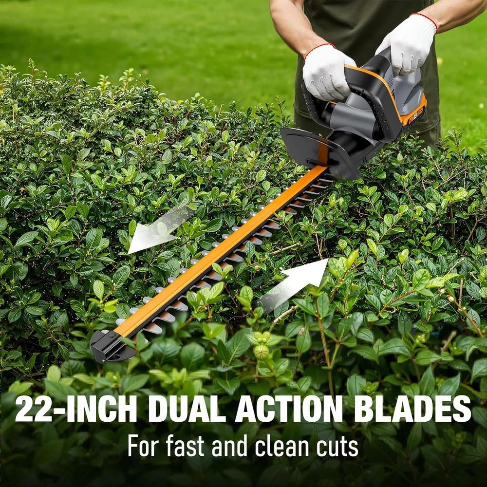 24V Cordless Hedge Trimmer and Grass Shear 2-in-1 Electric Shrub Cutter