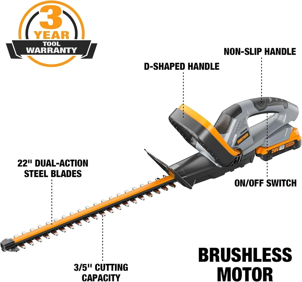 20V Brushless Cordless Hedge Trimmer with 22" Blade & 2 Batteries - Lightweight ‹ › ‹ › ‹ › ‹ › ‹ › ‹ › ‹ › ‹ › ‹ › 20V Brushless Cordless Hedge Trimmer 22" Blade & 2 Batteries Lightweight Design Features: UPGRADE BRUSHLESS MOTOR: Enjoy state-of-the-art brushless motor technology that operates 80% longer, delivers 50% more power, lasts 10 times longer, and operates 50% quieter than traditional motors. Experience the perfect blend of power and serenity. EFFICIENT CUTTING CAPABILITY: Equipped with a 22-inch dual-action blade, it boasts a maximum speed of 1400 SPM and a 3/5-inch cutting capacity to tackle a variety of shrubs and hedges seamlessly, minimizing vibration and enhancing efficiency. COMPACT AND LIGHTWEIGHT: At just 5.7lbs, this hedge trimmer is designed for portability. Its rubber soft grip handles ensure comfort and control from any angle, making it ideal for prolonged use, especially for the elderly and women. ERGONOMIC DESIGN: The D-shaped handle allows for easy positioning at any angle, ensuring a comfortable grip during extended trimming sessions. SAFETY FIRST: With a dual switch design, the trimmer activates only when both the trigger and the D-handle are pressed simultaneously, effectively preventing accidental start-ups and keeping your loved ones safe. GUARANTEE SERVICE: Backed by a 365-day warranty, should any issues arise during the after-sales period, contact us for free parts or a replacement without hassle. Why choose this Hedge Trimmer? Transform your gardening experience with our 20V Brushless Cordless Hedge Trimmer. Engineered for efficiency, comfort, and safety, it's your ultimate landscaping companion. Feel the power of advanced technology while enjoying a quieter garden trimming experience. Its lightweight design means you can achieve flawlessly manicured hedges without feeling fatigued. Perfect for gardeners of all ages, it's not just a tool; it’s a promise of impeccable outdoor aesthetics. Elevate your gardening game — choose our Brushless Cordless Hedge Trimmer today! Shipping Free & Fast Shipping - We offer free shipping to most of the USA with a normal delivery time of 3-10 businessdays. However, due to various situations, additional delivery time (up to 3 weeks) may be required for some items. Alternative Carriers - We may use alternative carriers (e.g. USPS, FedEx, UPS, etc.) to ensure your package arrives safely and on time. Due to the use of multiple carriers, we are unable to provide a tracking number automatically. Handling Time - Orders are processed and shipped within 1-5 business days of receiving cleared payment. Shipping Restrictions - Shipping to Alaska, Hawaii, Puerto Rico, Guam, and other US territories may incur shipping charges or delivery restrictions. Please contact us before ordering, or your order can be refunded/cancelled. State Restrictions - There may be restrictions based on your state of purchase. For example, certain items may not be shipped to California due to state regulations. Contact for Tracking Updates - If you require tracking updates or have any concerns about the delivery of your order, please feel free to contact us, and we will be happy to assist you. Return Please see our ebay return policy. We do not accept return on most products. This is to avoid customers mis-using ebay returns. All sales are final. Please be sure to check the return policy listed at the top of the listing. In rare cases, we may accept returns, if the buyer pays both ways shipping and 20% restocking fee. If you are un-sure of return policy of a particular item, please ask before buying. Payment We accept all major credit cards, PayPal, and Apple Pay for your convenience. Your payment information is secure and encrypted to ensure a safe and seamless transaction. Please complete your payment within 3 days of purchase to avoid any delays in shipping. Feedback Your feedback is extremely important to us. We strive to provide the best products and customer service possible. If you are satisfied with your purchase, please take a moment to leave us a positive review. If you have any concerns or issues with your order, please contact us before leaving negative feedback. We are committed to resolving any problems and ensuring your satisfaction. Contact Us If you have any questions or concerns, please feel free to reach out to our customer support team. You can contact us through the eBay messaging system. We are available Monday to Friday, 9:00 am to 5:00 pm EST, and we will do our best to respond to your inquiry within 24 hours. Buy it now and enjoy a pleasant shopping experience! UPC: Not Set Unit Quantity: 5.7 pounds Attachments Included: Hedge Trimmer Features: Lightweight,Brushless Motor,Efficient Cutting Capability,Compact and Lightweight,Ergonomic Design,Safety Features Accessories Included: Charger,2 * 2.0Ah Battery Material: Plastic Brand: Unbranded Type: Hedge Trimmer Power Source: Battery Product Line: Not Set Voltage: 20 V Engine Type: Not Set Model: Not Set Horsepower: 1 HP Noise Level: 50 dB Power: 200 W Battery Life: 60 min MPN: Not Set Engine Size: -- Tank Capacity: -- Color: Gray Blade Length: 22 in Year Manufactured: Not Set Item Width: Not Set Item Diameter: 22 in Cable Length: Not Set Item Length: Not Set Item Height: 1 Inches Country/Region of Manufacture: Not Set Item Weight: 5.7 pounds Cutting Length: Not Set Manufacturer Warranty: Not Set Style: Contemporary Unit Type: Not Set Battery Included: Not Set Assembly Required: Not Set