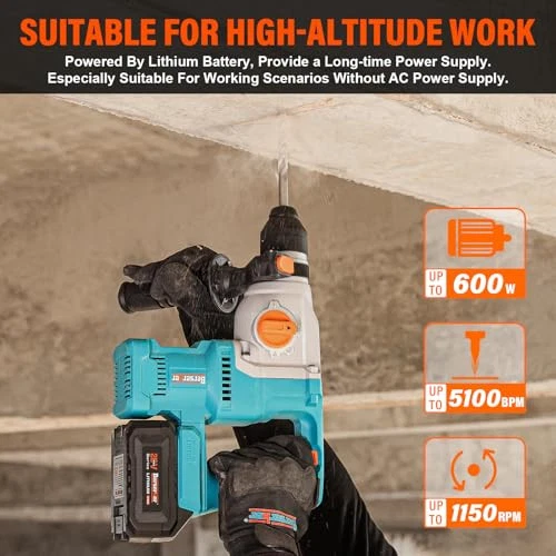 Return Policy Fast Delivery Trusted seller 20V Cordless 1-1/8" Rotary Hammer Drill SDS-Plus Brushless Motor included 2X4.0Ah Li-ion Battery with Dual Kickback Control,3.0A Fast Charger,4 Mode Variable Speed Rotomartillo for Concrete Product Description 【High-capacity 4.0AhX2 & Storage Case】20V Rotary Hammer x1, SDS-Plus Drill Bits x3, Point Chisel x1, Flat Chisel x1, High-capacity 4.0Ah Li-ion Battery x2, Super Fast 3.0A Charger x1, Carrying Plastic Box x1, User manual x1, Premium Metal Depth Gauge x1. 【Efficient Brushless Motor】Brushless motors make the motor run cooler, more efficient, and more durable by reducing motor wear.Delivers 0-1,150 RPM and 0-5,100 BPM, 2.1 ft.lbs./2.8 Joules of impact energy for fast drilling in concrete, brick, wood, metal,masonry, wall. 【High-power battery and 3.0A super fast charger】The 4.0Ah battery uses electronic control to optimize battery energy usage and extend service life. Applicable to all lithium projects. Includes ultra-fast charger with protection, fully charged in just 1.5 hours. 【Easy to Operate】:Set tool to 4 mode operations of "Drilling Only", "Hammer with drilling" ,"Hammer Only" , "Chisel Angle Adjust" for multiple applications. The forward and reverse switch and variable transmission provide user maximum control and accuracy. 【Compact and ergonomic design】Weight only 7.2 lbs for portability, and compact size allows it to access into high and tight areas. 360°adjustable auxiliary handle,enhances your experience. Shipping Returns Payment Shipping Shipping is FREE to all addresses other than APO/PO boxes in the lower 48 states. All our stock ships from US-based warehouses. Shipped via USPS or UPS (depending on location and package weight) Unless stated otherwise, all orders will ship within 24-72 hours of your payment being processed. Check our feedback to see the great reviews of FAST shipping we offer. Returns Seller does not accept returns Payment We currently accept payment via eBay managed payments only. Once payment is cleared, we will dispatch your shipment within 1-3 business days. Please refer to the "Shipping" tab for more information regarding shipping speed to your destination.