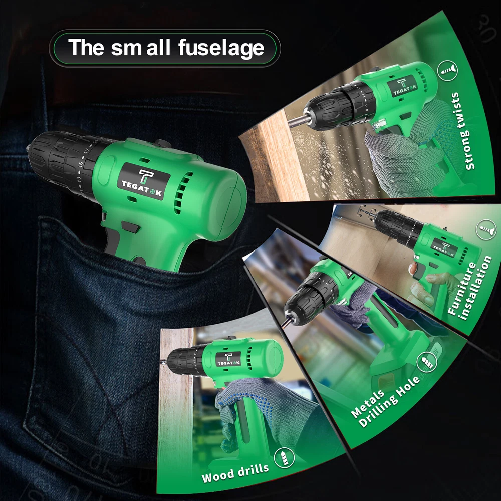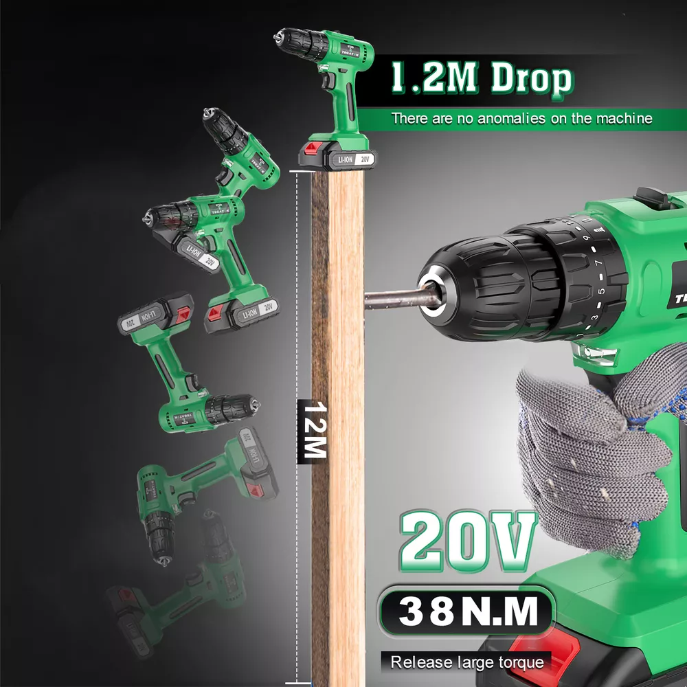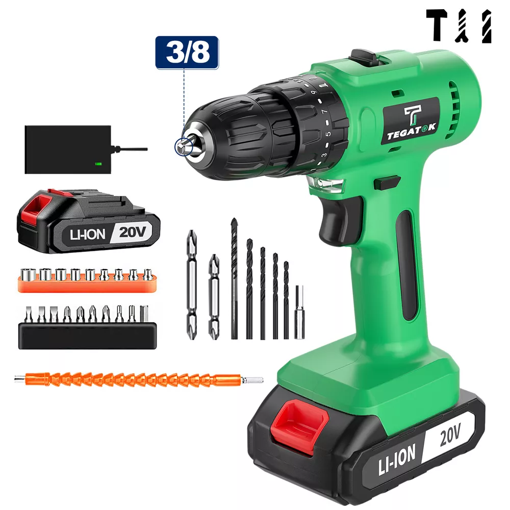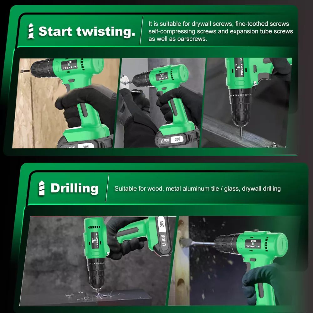 20V Cordless High Power Drill Set 3/8" Keyless Chuck And 18+3 Torque Setting