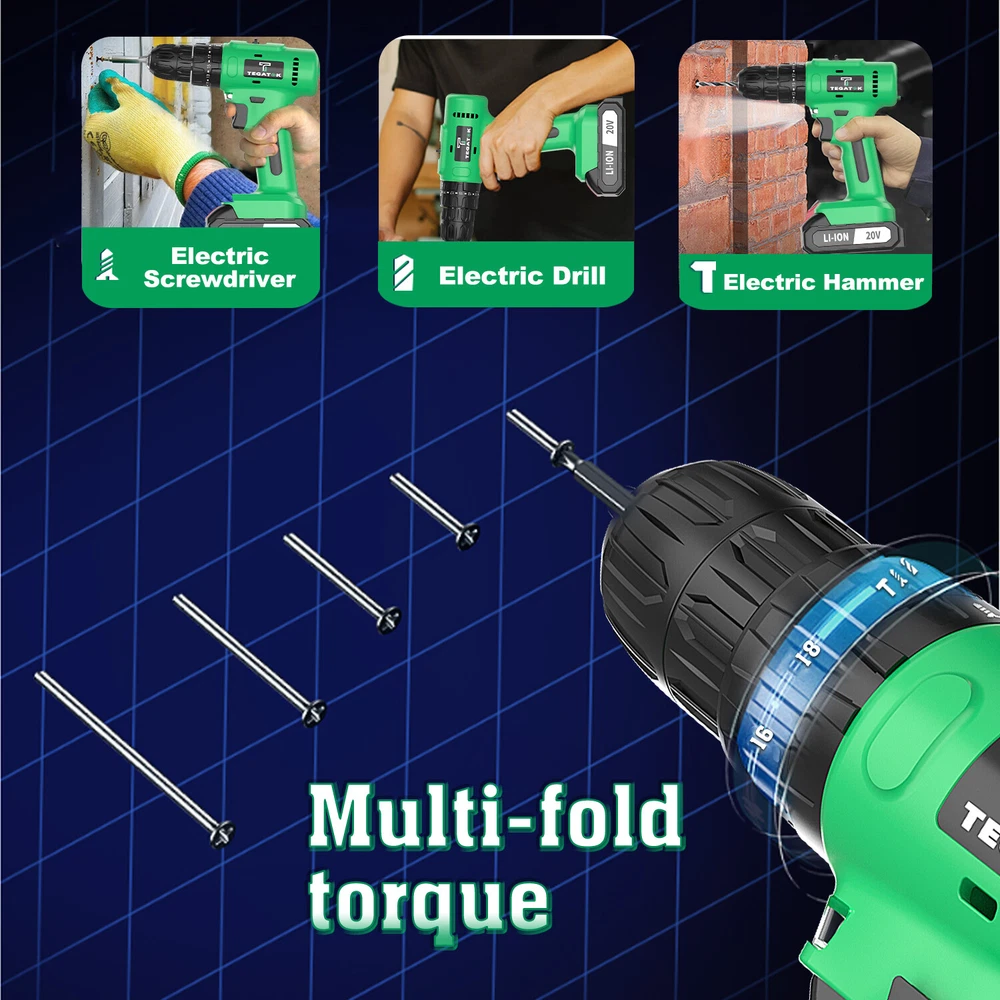 Cordless Drill Tool Kit Set: 20V Power Drill Tool Box with Battery Electric Dril