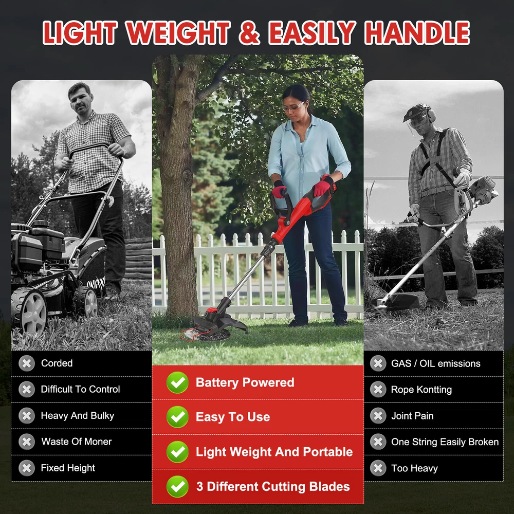 Cordless Electric Weed Eater Brush Cutter Lawn Edger String Trimmer Kit US