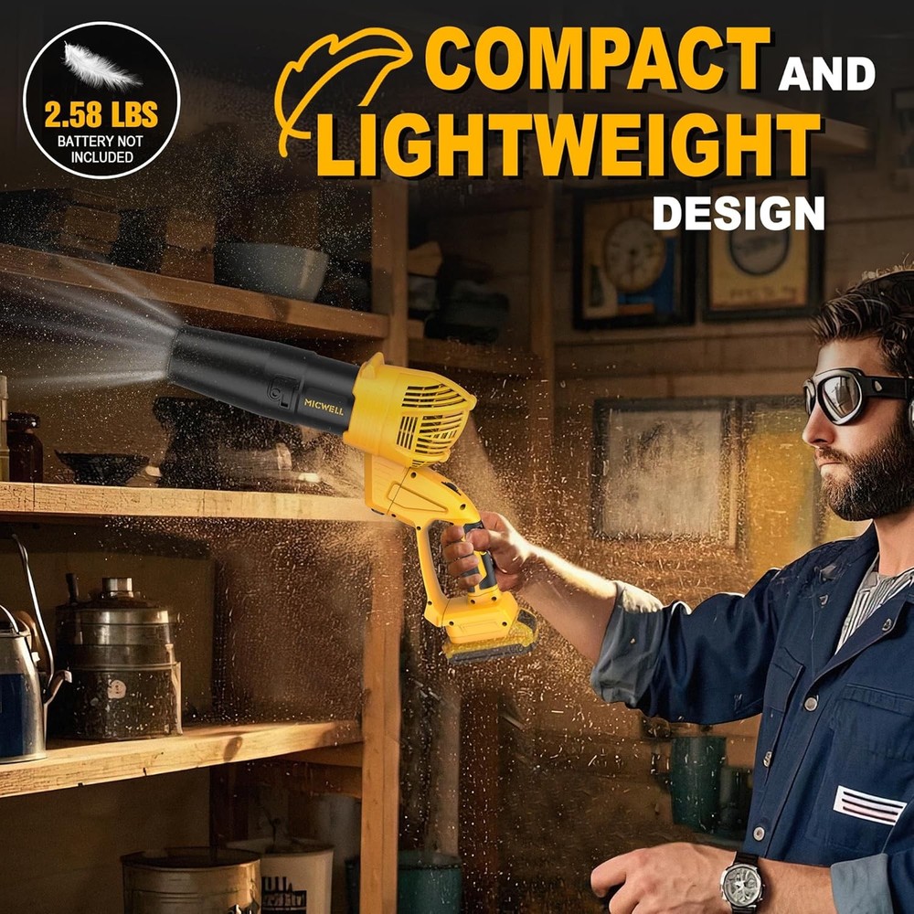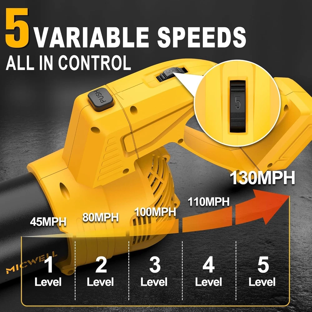 Cordless Blower for Dewalt 20V Max Battery, Rotatable Handle, 2.58Lbs Lightweight, 500 CFM Electric Blower, 5 Speeds, Handheld Mini Battery Powered Blower for Lawn Care, Yard Car, Patio (Tool Only) Item Description About this item TIP: MICWELL Cordless Leaf Blower does NOT INCLUDE BATTERY AND CHARGER, TOOL ONLY Compatible with DeWALT 20V Max Batteries: including models DCB200, DCB201, DCB203, DCB204, DCB205, DCB206, DCB207, DCB208, DCB210, DCB230, and DCB240 (but not compatible with DCBP series). If you already possess any of these DeWalt batteries, you can directly use this product without any additional cost 2 Angles Adjustable Handle for Enhanced Versatility: The cordless blower for DeWalt features a unique rotatable handle with 2 adjustable angles, enabling effortless switching between ground-level tasks (e.g., porches, walkways) and elevated tasks (e.g., automobile surfaces, roof edges). This design ensures a comfortable grip and enhanced control, while reducing strain on your back and shoulders during use 2.58 lbs Lightweight and Compact for Effortless Use: Weighing only 2.58 lbs, this mini leaf blower features a compact and lightweight design that offers easy, flexible handling. Even senior users or female users can effortlessly control it with one hand, and it remains comfortable to use without fatigue—even during extended cleaning sessions. Perfect for clearing debris in yards, driveways, or balconies, it transforms household chores into easy, enjoyable tasks 4 Working Modes for Maximum Flexibility: Equipped with an extension tube and a tapered nozzle, it supports 2 quick tool-free assembly methods. Combined with 2 adjustable angles, it forms 4 versatile modes. Using the extension tube can expand the cleaning range. When removed, it becomes compact, making it easy to operate in narrow spaces. Its adjustable length and rotatable airflow direction enable users to effortlessly handle various cleaning scenarios 5 Speed Adjustable Settings for Custom Control: With 5 adjustable speeds, this handheld blower lets you effortlessly tailor airflow intensity—from gentle gusts for delicate dusting on workbenches or computers to powerful turbo bursts for clearing stubborn leaves, porch debris, or removing water from a freshly washed car. The variable speeds ensure flexibility and power while achieving optimal energy efficiency when adapting to tasks ranging across various cleaning scenarios Advanced Axial Fan Technology: Featuring advanced axial fan technology and high-power motors, this battery powered leaf blower rapidly generates a powerful airflow of up to 500 CFM and 130 MPH. Whether tackling wet leaves, grass clippings, dust, or sawdust, its high-powered airflow ensures effortless debris removal. With powerful performance, it helps you quickly maintain a clean yard, porch, or workspace—keeping outdoor spaces tidy efficiently without spending excessive time Perfect Gift for Homeowners & Gardeners: The compact blower, easy to maneuver with wide-ranging applications, is an ideal choice for homeowners, gardeners, car enthusiasts, and senior/female users. Whether clearing fallen leaves in yards, dusting driveways, or performing detailed cleaning on car roofs and workbenches. Combining practicality, portability, and high performance, it undoubtedly stands as a high-quality gift to convey thoughtful care › See more product details Payment We accept payment only through PAYPAL Shipping We ship products worldwide through standard express courier service, it will reach within 7 to 10 days to abroad buyers, we ship the product after recieved clear payment and give full information about shipment to the buyer Return We accept product return within 7 to 21 days from delivery date but product should be in original position and not in damaged condition,the return shipping charges will be buyer responsibility