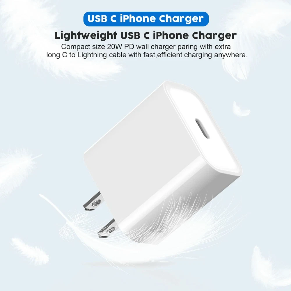 20W PD Fast Wall Charger Power Adapter USB-C to For iPhone Cable For For iPhone 14 13 12 11 XS Specification: Type: PD Fast Charger, Wall Charger , Power Adapter,Car Charger,Charger Adapter,USB-C Cable, Charging & Data Sync Cable, Type-C, USB Cable, USB-C to For iPhone Cable Features: Fast Charge, Lightweight, / Color: White Length: 1m/3ft,2m/6ft Ultra-Fast Charging : 20W USB-C For iPh one fast charger, For iPhone 12 up to 50% in just 30 minutes, which saves more than 1 hour for you, when compared to the 5W before charger. Fast Charging & Data Transfer : Top quality For For iPhone cable is made of excellent copper cord, which charge For iPhone safely and fast. Work perfectly with wall charger or computer. It not only a safe For iPhone charge cable, but also a fast transferring For For iPhone data cable. Tangle-free 6 Foot length is convenient for usage while charging and sync at home/office/travel in bed, hotel rooms, and more. Efficinet Safe Fast Charging: The Power Delivery Wall Charger for For iPhone owns bulit-in multi-protection system, avoiding from over-voltage, over-charge, over-heat, etc. The smart chip including in the certified charging cable match the current required by the for Apple device automatically, charge your For iPhone/For iPad device fast, safely and steadily. Universal Compatibility: 20W USB-C power adapter & C to For iPhone cable set, compatible with For iPhone 13/13 Mini/13 Pro/13 Pro Max/ iPhone 12/12 Mini/12 Pro/12 Pro Max/11/11 Pro/11 Pro Max/XS/XS Max/ XR/X/8 Plus/8, For iPad Pro/ For Air/ Mini and More. Travel Ready : Lightweight and pocket-size, USB-C wall charger with 3FT charger cable maximizes portability wherever you go. And a wide range of 100-240V input makes it ideal for world travel. Comprehensive Compatibility : With the Corey kin 20W wall charger to access the fast charging for For iPhone 12/12 Mini/12 Pro/12 Pro Max/11/11 Pro/11 Pro Max/XS/XS Max/ XR/X/8 Plus/8/7/7 Plus/6; for For iPad Pro 10.5”/ For iPad Air 3 10.5”/ For iPad Mini5 7.9” and More. Item included:According to your choice