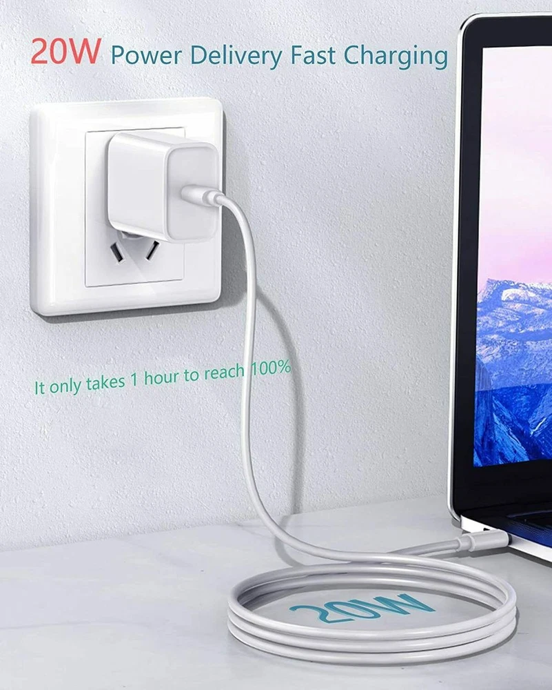 20W USB-C Fast Wall Charger PD Adapter for iPhone 14 13 12 11 XR iPads