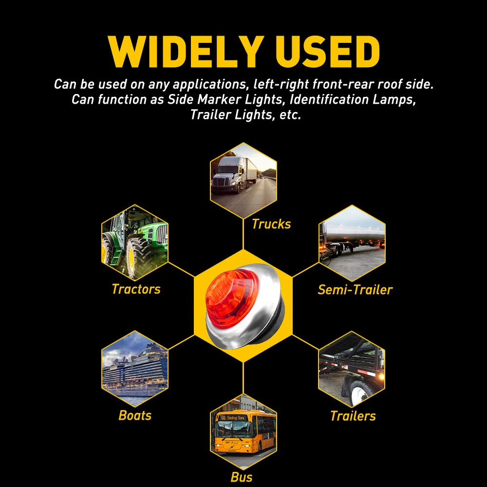 Features:100% brand new and high quality; Low power and current draw- long life LED.Water and Dust Resistant.DOT & SAE approved Guarantee quality and Legal use. 3 inbuilt long life superflux LED's.Saving Space Design; Grommet Included for 1-3/8" hole; 1-1/4" Diameter light (Rubber grommet 1-3/4" OD); Needs a 1.375 hole, and about 3/4" depth behind. Specifications: Material: PC Lens Silicone Rubber Base + 304 Stainless Chrome Bezel CoverLights Color: Amber+RedLight source power: 1 WVoltage: 12VLuminous flux: 80LMLifespan: Over 50000 hoursWaterproof IP67 and Dust Resistantwiring: 2 wires ( Black & White)Application: Car , Truck & Trailer lighting; Boat interior & exterior lighting; Roof Lighting; Anywhere you w... 20X 3/4" Amber Red LED Side Marker Light With Base Stailness for Truck Trailer Features: 100% brand new and high quality; Low power and current draw- long life LED.Water and Dust Resistant. DOT & SAE approved Guarantee quality and Legal use. 3 inbuilt long life superflux LED's. Saving Space Design; Grommet Included for 1-3/8" hole; 1-1/4" Diameter light (Rubber grommet 1-3/4" OD); Needs a 1.375 hole, and about 3/4" depth behind. Specifications: Material: PC Lens Silicone Rubber Base + 304 Stainless Chrome Bezel Cover Lights Color: Amber+Red Light source power: 1 W Voltage: 12V Luminous flux: 80LM Lifespan: Over 50000 hours Waterproof IP67 and Dust Resistant wiring: 2 wires ( Black & White) Application: Car , Truck & Trailer lighting; Boat interior & exterior lighting; Roof Lighting; Anywhere you want because it easy to install ! Package included: 20 X LED Side marker Light Note: Please allow 1-3cm difference due to manual measurement. Due to light and screen difference, the item's color may be slightly different from the pictures. Item Specifics Manufacturer Warranty : 2 Years Voltage : DC 12V Fitment Type : Direct Replacement Lighting Technology : LED Suitable For : Side Marker Light Size : 3/4" Led Quantity : 3 LED To Fit : Side Indicator, Sidelight Lens Color : Amber/Red Modification Description : 304 Stainless Chrome Bezel Cover Placement on Vehicle : Front, Rear, Left, Right Waterproof : IP67 Fitment : For Pickup,truck trailer,boat,Lorry,Van,caravan Manufacturer Part Number : LED Side Marker trailer light Brand : AUXITO Style : Decoration Lights Color : Amber, Red Type : Side Marker Clearance Light Features : For truck trailer,boat,bus,Lorry,Van,caravan Fit for : Universal For most 12V Vehicles Heavy trucks Application 1 : For JEEP Wrangler/grand cherokee/Rubicon/Compass .etc Application 2 : For Chevrolet Colorado/Silverado 1500/2500/3500HD .etc Application 3 : For Ford Ranger/Focus/F150/250/350/450/550/650/750 .etc Payment (1) Instant PayPal payment is the preferred method of payment. (2) We also accept payment via PayPal, DebitCard, Visa, MasterCard, Discover. (3) We will only ship to the confirmed PayPal shipping address given with the payment. (4) If you want to ship to other address, please change your PayPal shipping address before you make payment. (5) To avoid initiating an unpaid item claim, please pay within 7 days. Shipping (1) We will ship your item(s) within 24 hours. (2) We ship this item to US usually via USPS first class mail. It usually takes 3-6 working days to deliver. Returns (1) We offer free return & money back guarantee. If you are not satisfied with your purchase for any reasons, you can return the item for refund or replacement/exchange. All returns must include the original packaging. (Please refer to our return policy for details.) (2) If you don't return goods within 60 days from date of purchase, your right to cancel will be revoked. Any items damaged because of incorrect installation will not be refunded. Please contact us for return or troubleshooting help prior to returning any products. (3) Unauthorized reselling of AUXITO products is strictly prohibited and we can't honor the warranty if purchasing from the unauthorized reseller. Contact Us [Our office hours are MONDAY - Saturday 9:00PM - 6:00PM PST, but we will response you once we get your message .There will be some delay on respons if you send message or E-Mail on Sundy.] (1).Negative feedback will not help resolve any problems you have, please contact us via eBay messages before leaving negative feedback, our customer service will make best effort to help you with the issues. (2).We maintain high standards of excellenceand strive for 100% customer satisfaction! Feedback is very important to us. We request that you contact us immediately BEFORE you give us neutral or negative feedback, so that we can satisfactorily address your concerns. FAQ Why swith to LED? LEDs not only give your vehicle a clean, modern look but, with proper use, will outlast any halogen bulb and HID bulb! Low energy draw, high lumen output, and instant on/off LED technology out shines stock bulbs in every way. Which bulbs are used in my vehicle? Check Sylvania automotive lamp replacemnt guide, you can select the year, make, and model of your vehicle, then select the application you want to replace or upgrade from stock. What does CAN Bus mean? CAN Bus means Controller Area Network Bus. This system monitors your vehicle and reports operating conditions. CAN Bus systems are commonly found in European vehicles such as BMW, Audi, Mercedes, Volkswagen, Porsche, and in many American vehicles. While most late model American vehicles have CAN Bus systems, it is always good to check with your vehicle dealer to see which system your vehicle has before purchasing electrical products. When do you need Warning Canceller? Some vehicles with cmplex internal computers(such as Audi,BMW,Jaguar,Mercedes,etc.) might report on-dash errors or flickering on the headlights. The warning canceller fixes the dashboard warning and flickering effect. Bulb Out Dashboard Error: On some vehicles, the dashboard will report as if you have a headlight bulb missing or burnt. It does not affect the headlights functioning, but the light on-dash will be o