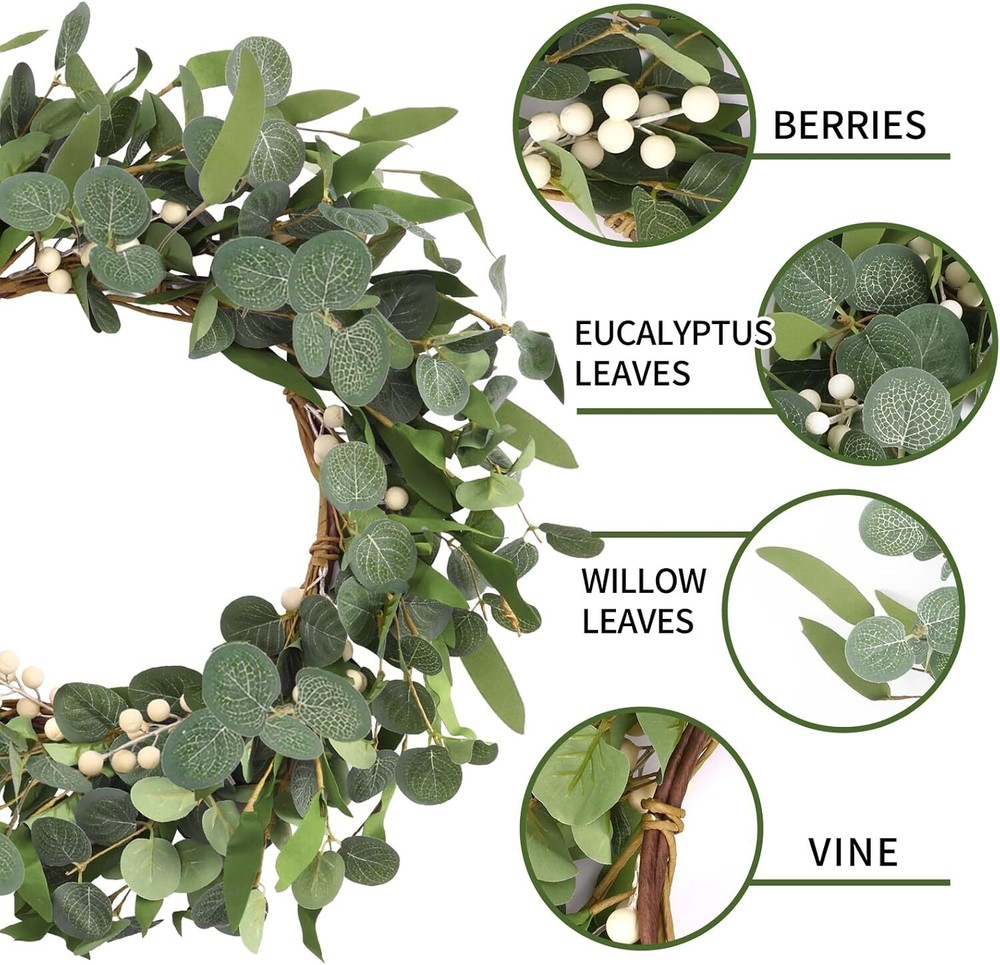 This gorgeous eucalyptus wreath instantly elevates my front door with its lush greenery and farmhouse charm! The quality is fantastic—full, realistic leaves and sturdy construction that holds up well against wind. It adds such a fresh, welcoming vibe to my porch, and I’ve gotten so many compliments from neighbors. Perfect for spring but timeless enough to keep up year-round. Love it!