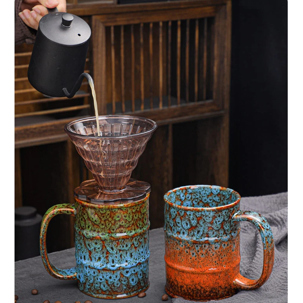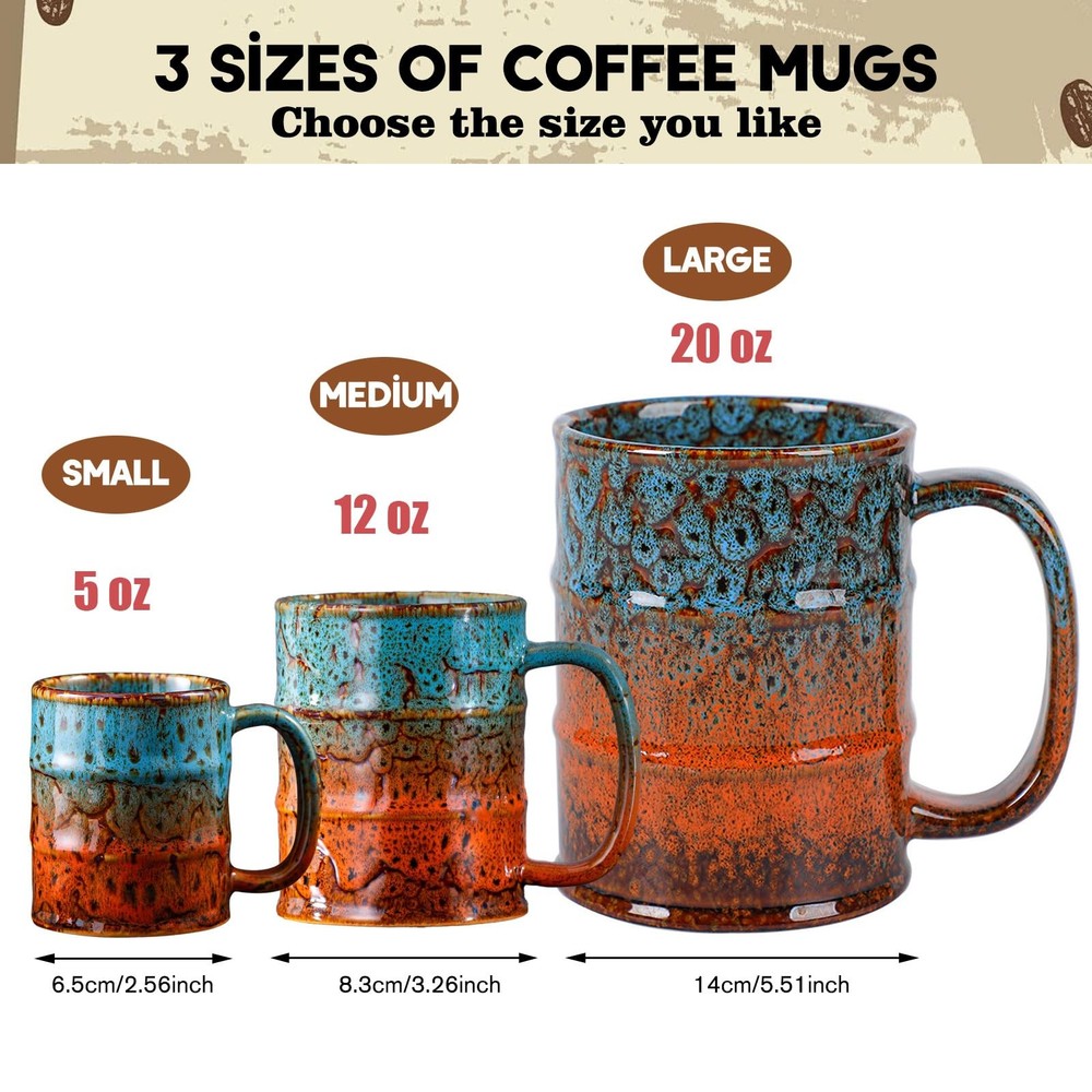 EXTRA LARGE COFFEE MUG 20oz coffee mugs is enough to hold coffee, milk, cocoa, tea, juice, and beer, and provide them with a lot of space. our ceramic mugs can ensure coffee temperature in a short period of time, effectively interpreting the aroma of coffee, maintaining a good taste, and not transferring heat to your hands. Large Size and Capacity Coffee Mug: Our unique kiln-changed glaze features an impressive 20 oz capacity, standing 4.9 inches tall and 3.7 inches in diameter. It's perfect for serving both hot and cold beverages, making it an ideal choice for large servings of coffee, tea, lattes, milk, juice, or even beer,These coffee mugs are the perfect companions for your daily caffeine fix or refreshing drinks. Sturdy and Durable Ceramic Coffee Mug: Our robust ceramic coffee mugs are crafted from high-quality lead-free and cadmium-free materials, enhancing your beverage experience. Designed for versatility, their thick, consistent walls keep your coffee hot, and they are also dishwasher and microwave safe. Unique Glaze Ceramic Mug: Each oversized coffee mug features a distinctive glaze created through special firing techniques, showcasing rich and varied colors. Colorful and beautifully crafted, no two mugs are the same, adding a touch of personality to your collection. Enjoy a simple yet stylish design that complements any environment. Tall Coffee Mugs with Handlee: Our big coffee mug are designed with large, comfortable handles that are easy to grip, making them suitable for larger hands,They provide stability for those with grip or dexterity issues, and the handle remains cool to the touch even when heated in the microwave. Thoughtful Gift for Any Occasion: Our unique coffee mugs make thoughtful gifts for friends and family. They are perfect for festivals, birthdays, or special occasions, blending functionality and charm that anyone would appreciate. Whether at home or in the office, they are a versatile addition to any kitchenware collection.