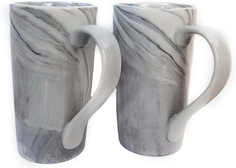 20oz Large Marble Coffee Mugs – Set of 2 Tall Ceramic Cups, Tea & Beer Mug Gift Color: Gray Special Feature Programmable Style Fine Theme Holiday 20 ounce Extra Large coffee mug size: 3.8" W x 6.1" H. Great for Latte coffee, tea, cocoa, cappuccino. Unique Design-Easy to grip large handles, elegant and unique marbling on each cup, no two cups are alike. Stylish and atmospheric mug for Men Women Professional Porcelain-Made of high quality marble ceramic, Durable and easy to clean, lead-free and non-toxic. Safe for Dishwasher, Microwave, Oven and Freezer. The Perfect Mug Gift-It is packaged in a well-wrapped box, a perfect gift for your friends and family in any occasion such as Housewarming, Wedding Party, Mothers' Day, Fathers' Day, Christmas and New Year's Day