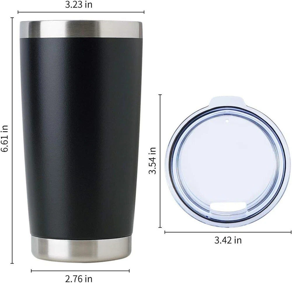 20oz Stainless Steel Tumbler Bulk with Lid, Double Wall Vacuum Insulated Travel Mug, Powder Coated Coffee Cup, Powder Black, 8 Pack DURABLE EXTERIOR WALL: The tumbler pack are made with high-grade 304 18/8 Food Grade steel, anti-rust, unbreakable and stands up to heavy use through every season. Clear press-on top helps you see what's inside. EXCELLENT TEMPERATURE RETENTION DESIGN: The bulk cups keep your on-the-go beverages hot for three hours or cold for nine hours, perfect for daily use MULTIFUNCTIONAL USE: Superior powder coating finish against chips and scratches, sweat free, outside stays dry. Grip fits easily in your hand, fits in most vehicle holders EASY CLEANING: Hand washing is recommended, electro-polished interior doesn't transfer flavor & no aftertaste. You don't have to worry about your morning or afternoon teas being ruined SATISFACTION GUARANTEE SERVICE: We are determined to provide the best product and high quality service. If you have any question, pls contact me as soon as possible The video showcases the product in video guides you through product video compares multiple video shows the product being unpacked.