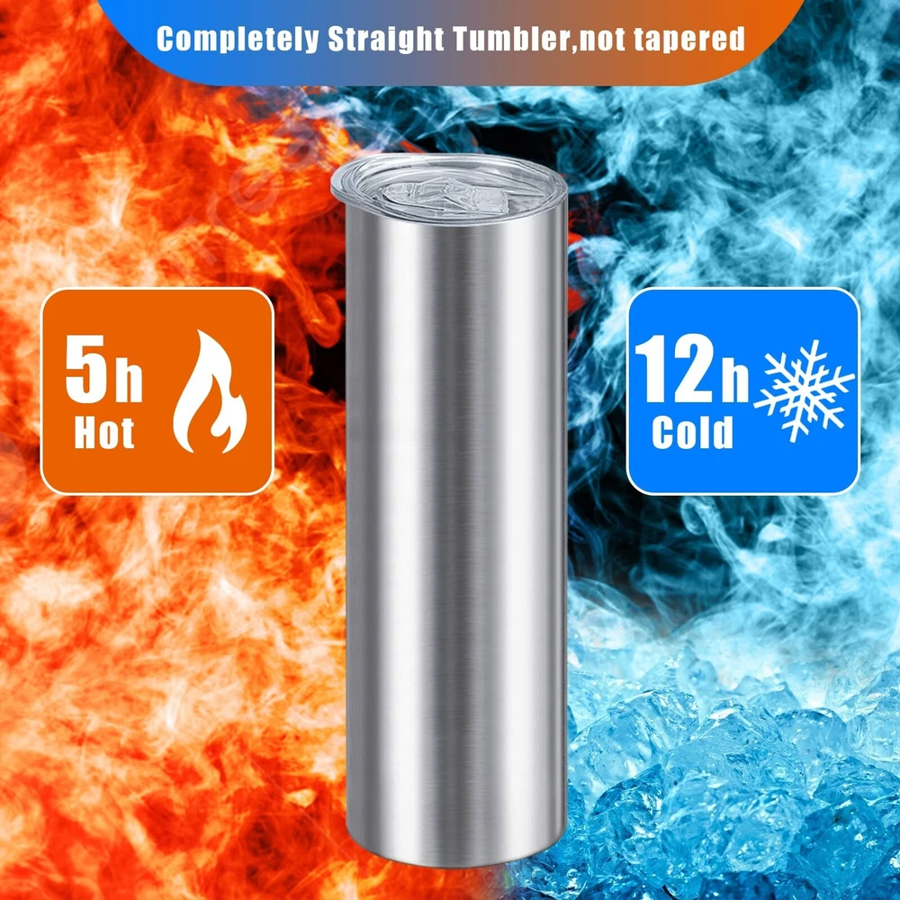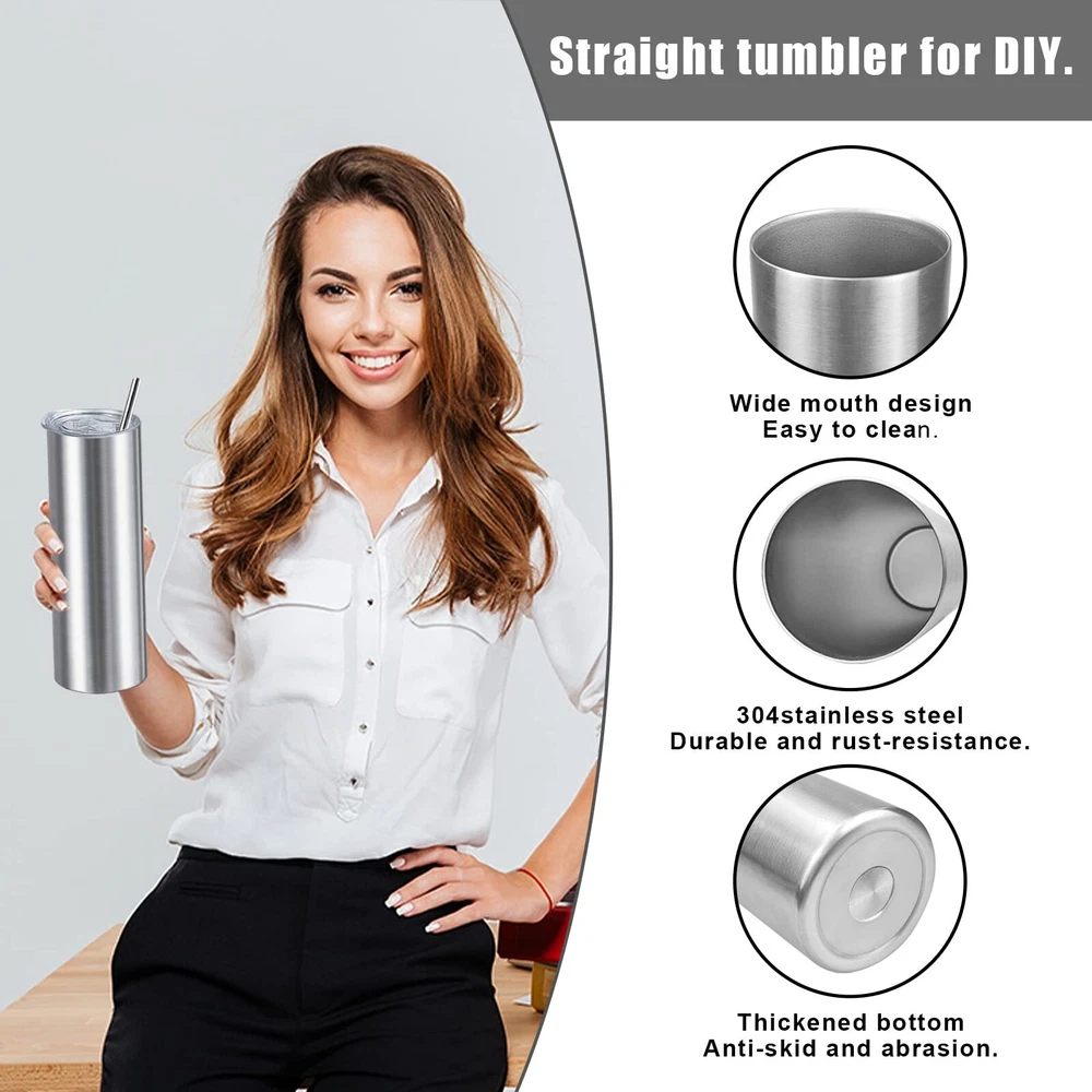 20oz Straight Skinny Tumblers Bulk,Stainless Steel Tumbler with Straw,8 Pack Double Wall Slim Insulated Tumbler for Travel,Coffee,Tea, Beverages,Diy Gift For Men Women Friends(Silver) Description: Features: VACUUM INSULATIONXccMe stainless steel tumbler adopts double-walled vacuum technology that can keep your on-the-go beverages hot for 6+ hours or cold for 12+ hours HIGH QUALITY:These 20oz skinny stainless steel tumblers are made of high-grade 18/8 Food Grade Stainless Steel,boast anti-rust,lead free stainless steel and easy wash allowing for multi-season use! PERSONALISE:The slim and straight tumbler shape design is very suitable for decals and resin craft.It is very suitable as gift for bridesmaids,bachelor parties and birthday parties. BPA FREE LID:The eco-friendly lid is completely BPA free, silica gasket seals to achieve maximum spill proof capability. The splash proof sliding cover is straw friendly. APPLICATIONS:It is very great for your daily commute, as well as the office, the beach, pool, outdoor sporting events, tailgate parties, and camping.Moreover it is a good choice for gift. Product Details: Brand: XccMe Color: Silver 8pack Special Feature: Leak Proof Style: Personal customization Theme: Food Brand: XccMe Color: Silver 8pack Special Feature: Leak Proof Style: Personal customization Theme: Food Recommended Uses For Product: Travel, Home Included Components: Lid Straws Specific Uses For Product: Hot/Cold Drinks Shape: tumbler Pattern: Solid Product Care Instructions: Dishwasher Safe Age Range (Description): Adult Material Feature: Insulated Reusability: Reusable Unit Count: 8.0 Count Product Dimensions: 6"W x 0.5"H Material Type Free: BPA Free Number of Items: 8 Package Type: Standard Packaging Finish Type: Glossy Manufacturer: XccMe UPC: 783103778976 Item Weight: 11.8 ounces Country of Origin: China Date First Available: April 6, 2020 On Nov 20, 2024 at 21:12:33 PST, seller added the following information: