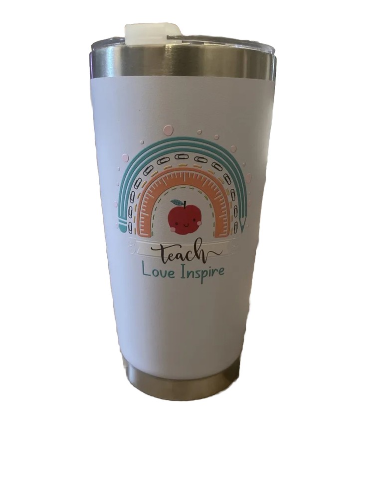 Teacher White Rainbow Tumbler 20oz w/straw hole and Lid "Teach Love Inspire”. Condition is New. Shipped with USPS Ground Advantage.